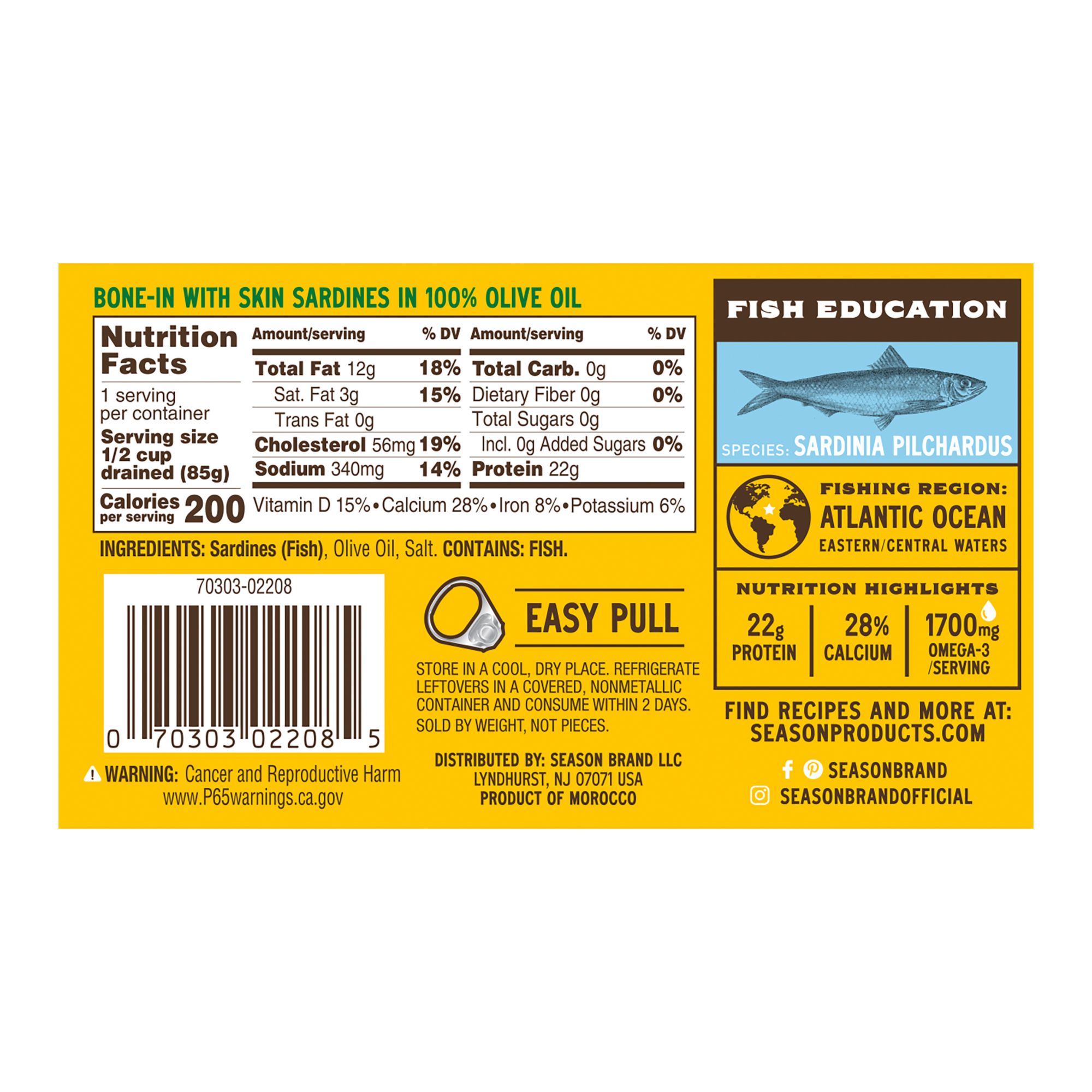 Made with wild-caught fish, Season Wild Caught and Sustainable Fish Sardines in olive oil are a sustainable and healthy option.