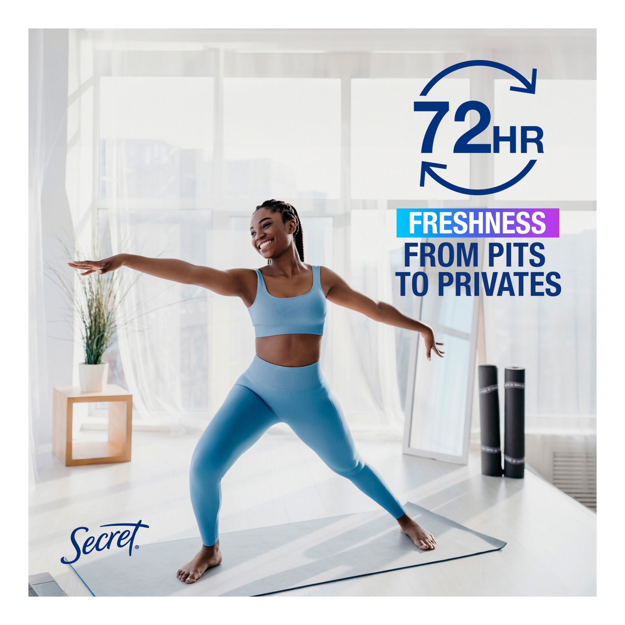 Want to know a Secret? Armpits aren’t the only thing that stink. Sweat happens everywhere, but with Secret, stink doesn’t have to. Try Secret Whole Body Deodorant for clinically proven 72 hour odor protection from your pits to your privates. Secret Whole Body Deodorant is aluminum-free, free of dyes, parabens, phthalates and is made to be gentle on skin.