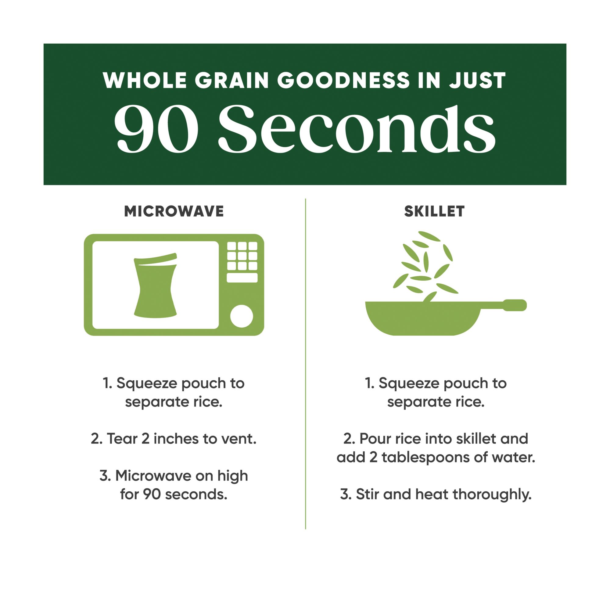 - Instant rice takes about 90 seconds to prepare whether you use a microwave or skillet; an ideal addition to diets that suit busy lifestyles