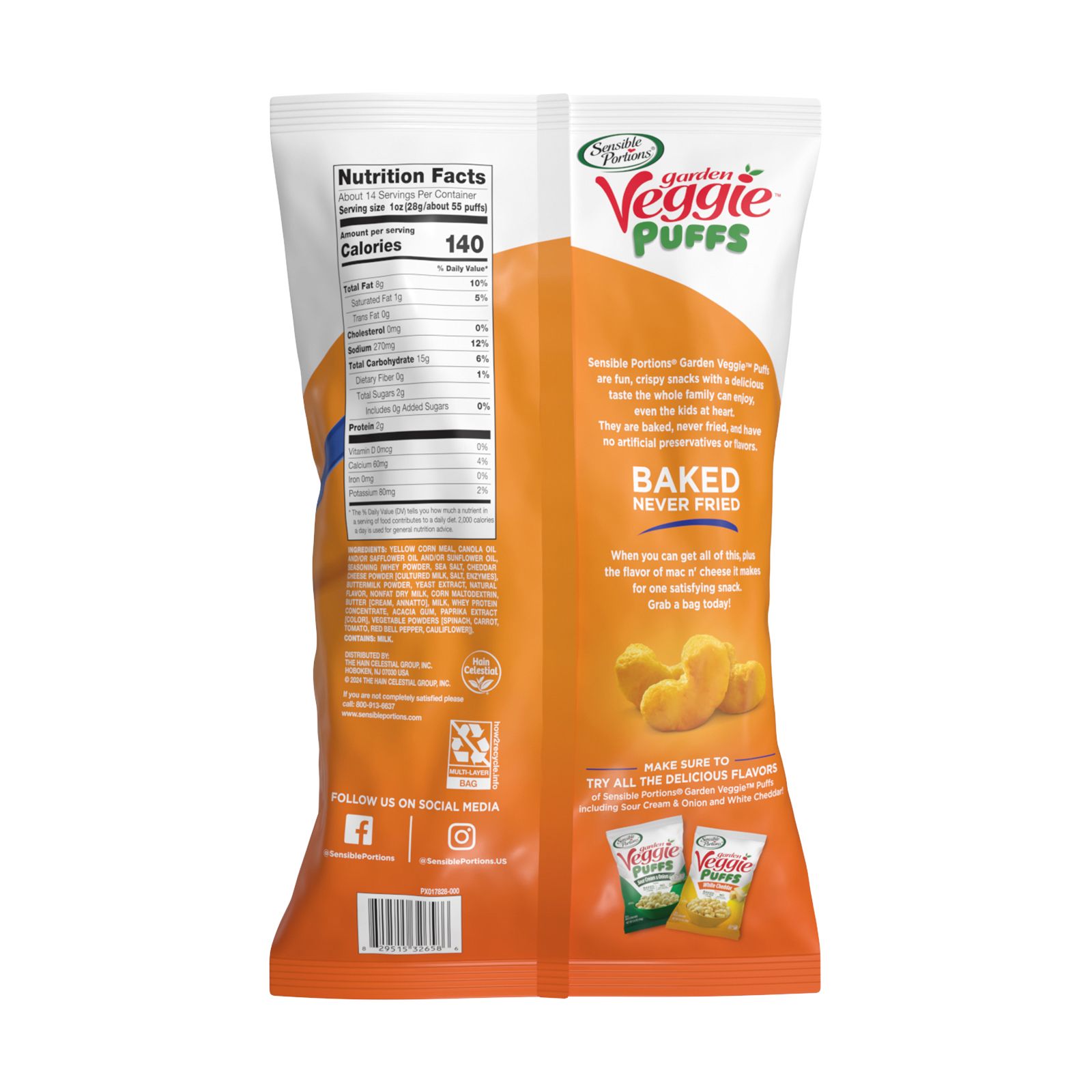Sensible Portions Garden Veggie Mac n' Cheese Puffs are a lite, airy, and poppable snack with a delicious taste the whole family can enjoy, even the kids at heart. Baked, never fried, and with 30% less fat than the leading puffed snack, you can now cure your crunchy cravings anytime. Sensible Portions Garden Veggie Mac n' Cheese Puffs are crafted with a unique texture and are full of flavor. The Sensible Portions brand believes you shouldn’t have to compromise on taste when choosing a better-for-you snack.