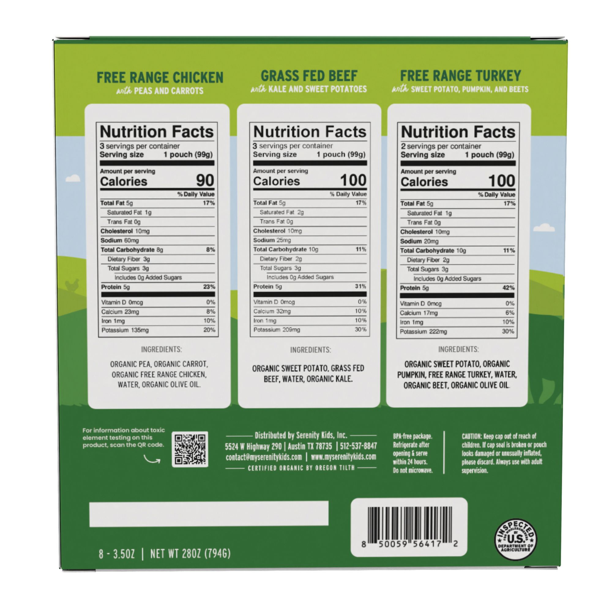 Serenity Kids Chicken, Beef & Turkey Meat & Organic Veggies Baby Food Variety Pack, 8 ct./3.5 oz.
