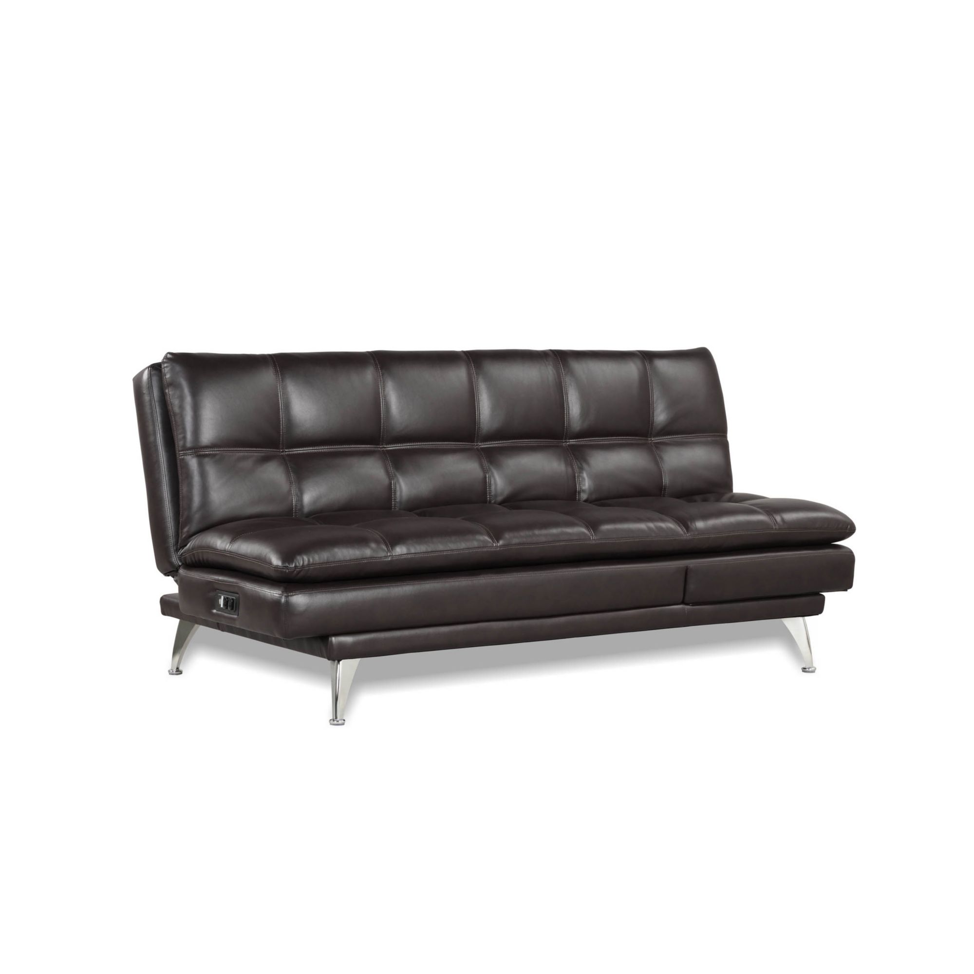 Look no farther than the Serta Baytown Convertible Sofa for all your lounging needs. This sleek futon is a modern, functional addition to any living space. Seat up to three in style on the sofa and lean into comfort when you partially recline the cushioned backrest. Fully reclining the backrest transforms Serta Baytown into a full-sized bed, with high-density foam cushions providing you the perfect support for a good night’s rest. Kick up your feet and settle down with your laptop or your latest book when you turn the Baytown into a chaise by inclining the left-hand side cushions. Charge your devices with the two USB ports and two standard outlets while the Baytown recharges you. Available in java faux leather.