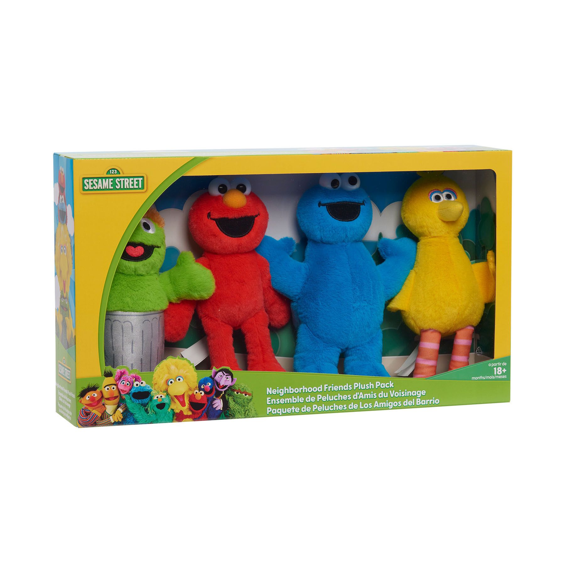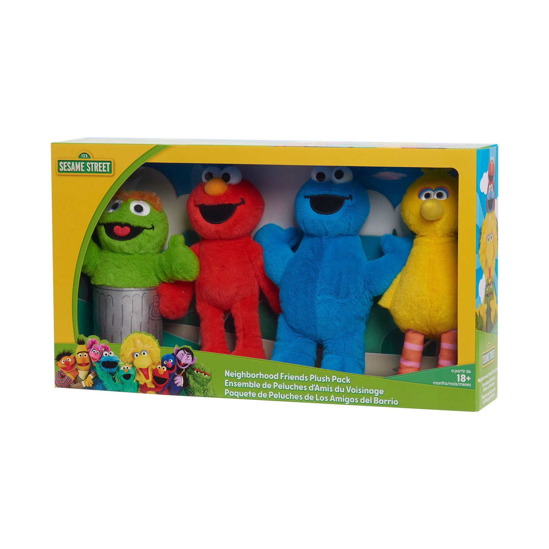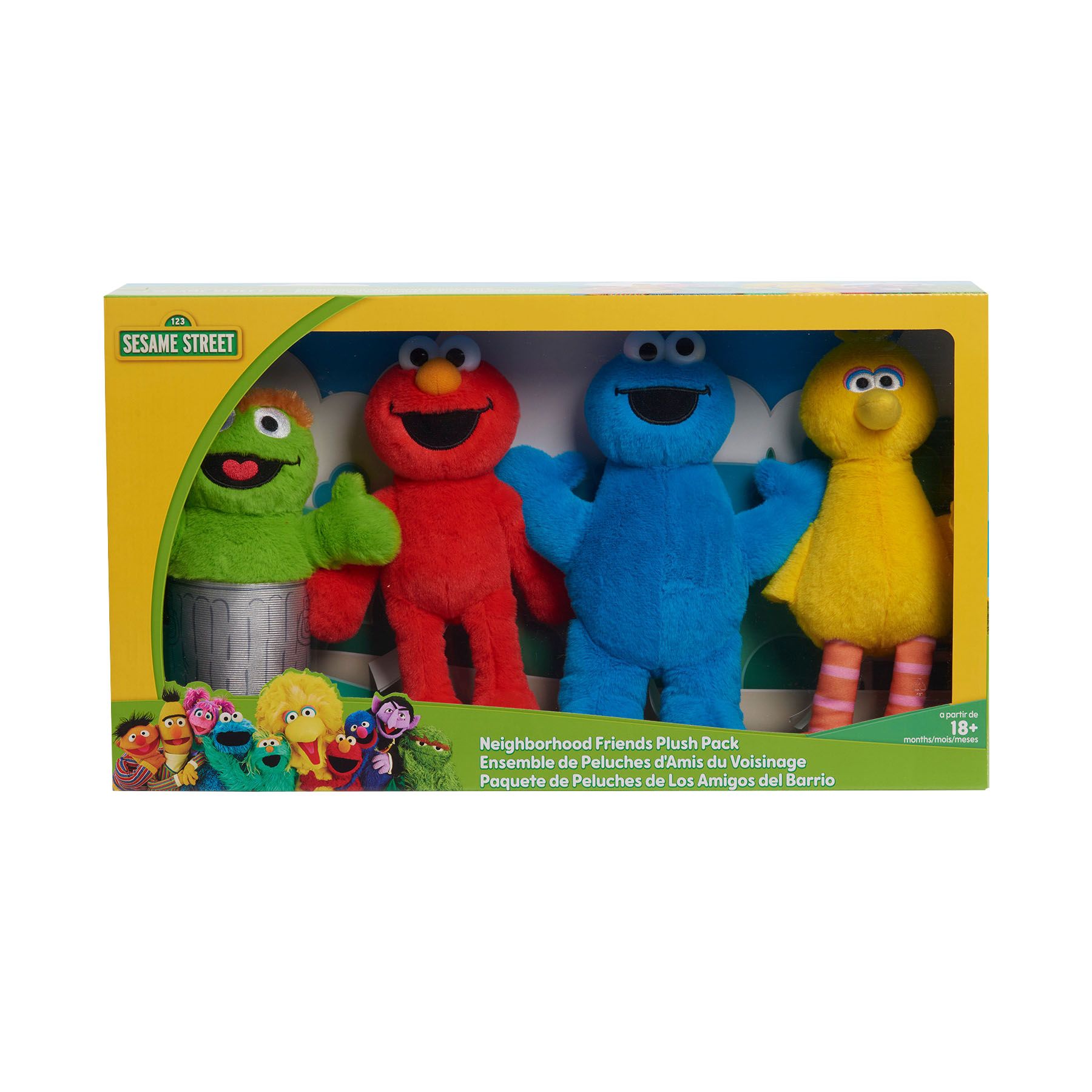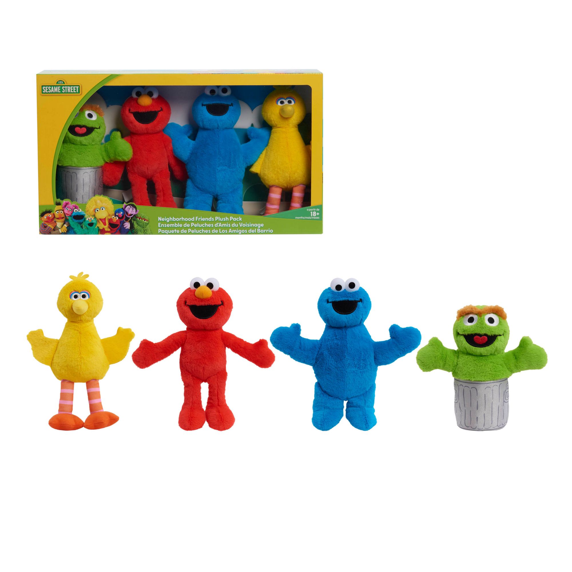 Sesame Street Big Bird, Elmo, Cookie Monster, and Oscar Plush Collector Set