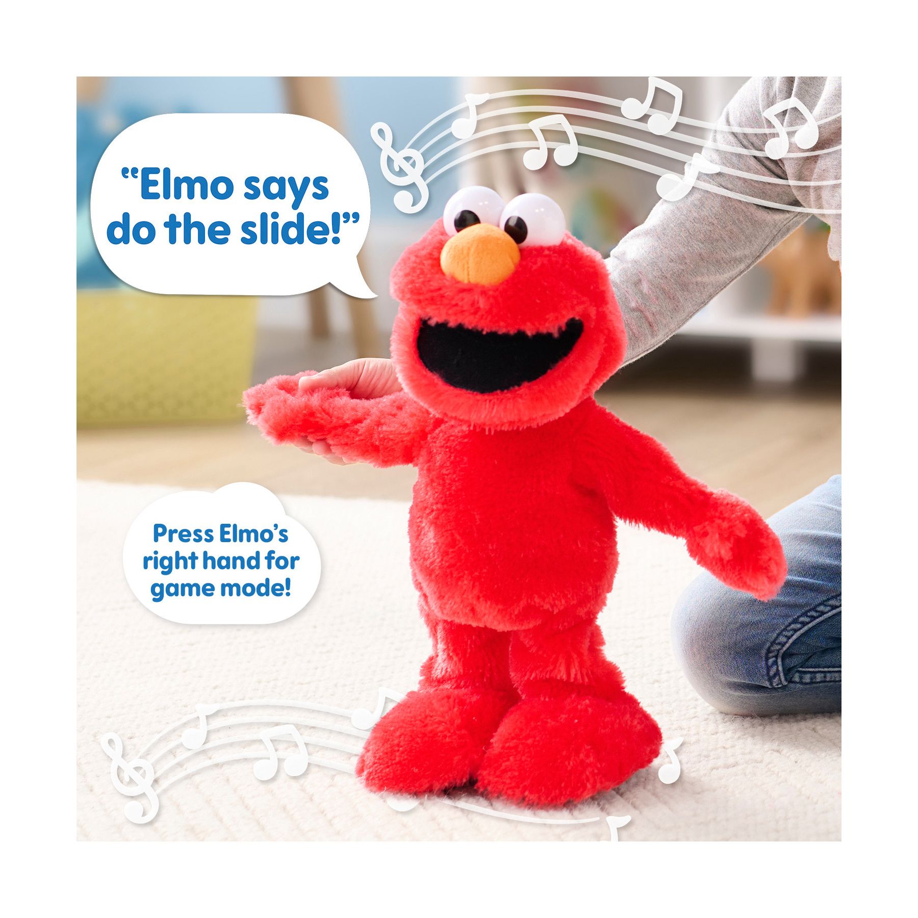 Two Modes of Play: Press Elmo’s left hand to activate "The Elmo Slide" song and dance moves. Elmo’s arms flap, his hips sway, and he slide from side to side. His mouth opens and closes as he sings and says fun phrases. Press Elmo's right hand to play the "Elmo Says" game. It's like "Simon Says," with Elmo leading the way