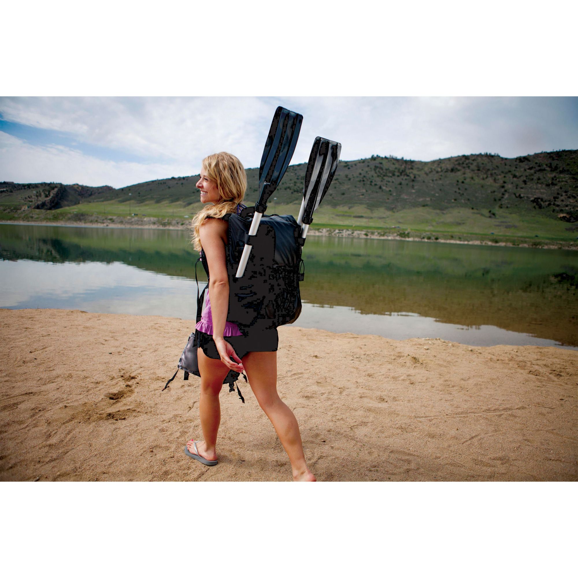5-minute set up lets you spend more time on the water Easy-to-carry backpack system turns into the seat 21-gauge PVC construction is rugged for lake use Tarpaulin bottom provides durable protection from punctures Multiple air chambers allow another chamber to stay inflated if one is punctured Backrest lets you lean back and enjoy the ride Multi-position foot rest lets you find your most comfortable position Secure storage area lets you safely store items with bungees Airtight system is guaranteed not to leak Includes inflatable kayak, pump, paddle, and carry bag Warranty: 90 days
