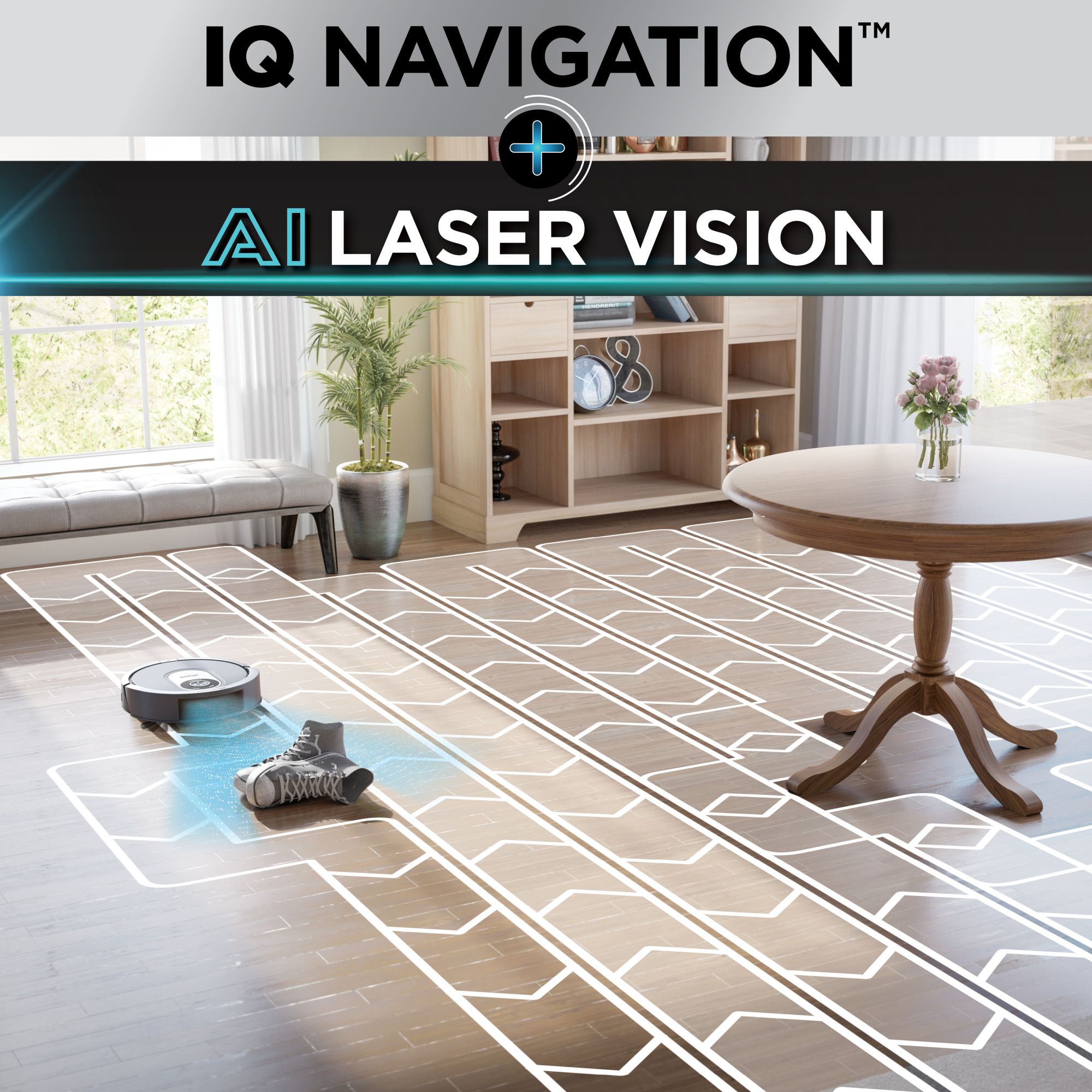 Don't clean before your robot cleans: shark has innovated its IQ navigation technology by adding AI laser vision, which intelligently detects and avoids objects and responds to no-go zones so you don't need to tidy before your robot runs