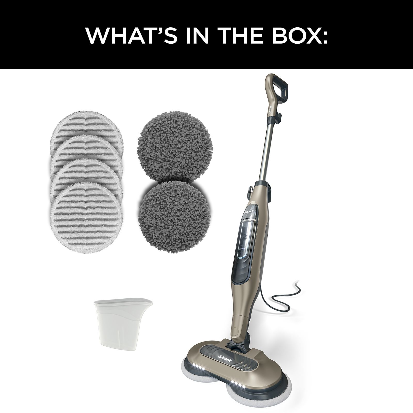 Bring out the best in your floors, The Shark® Steam & Scrub scrubbing and sanitizing* steam mop gently scrubs and sanitizes all at once. The combination of steam and rotating pads deliver up to 2x better stuck-on stain removal vs. traditional steam mops** and a chemical-free sanitization. The Shark® Steam & Scrub has three steam modes for personalized cleaning needs: Light, for a light and quick cleanup; Normal, for everyday use; and Deep, for stuck-on messes. Its Dirt Grip® Soft Scrub Pads are durable, multi-use washable pads designed to quickly cut through dirt and stains while being gentle on floors. It also features a sleek design with swivel steering and LED lights for easy maneuverability in tight spaces and around furniture. The Shark® Steam & Scrub is designed for all sealed hard floors: hardwood, marble, tile, vinyl, laminate and stone.