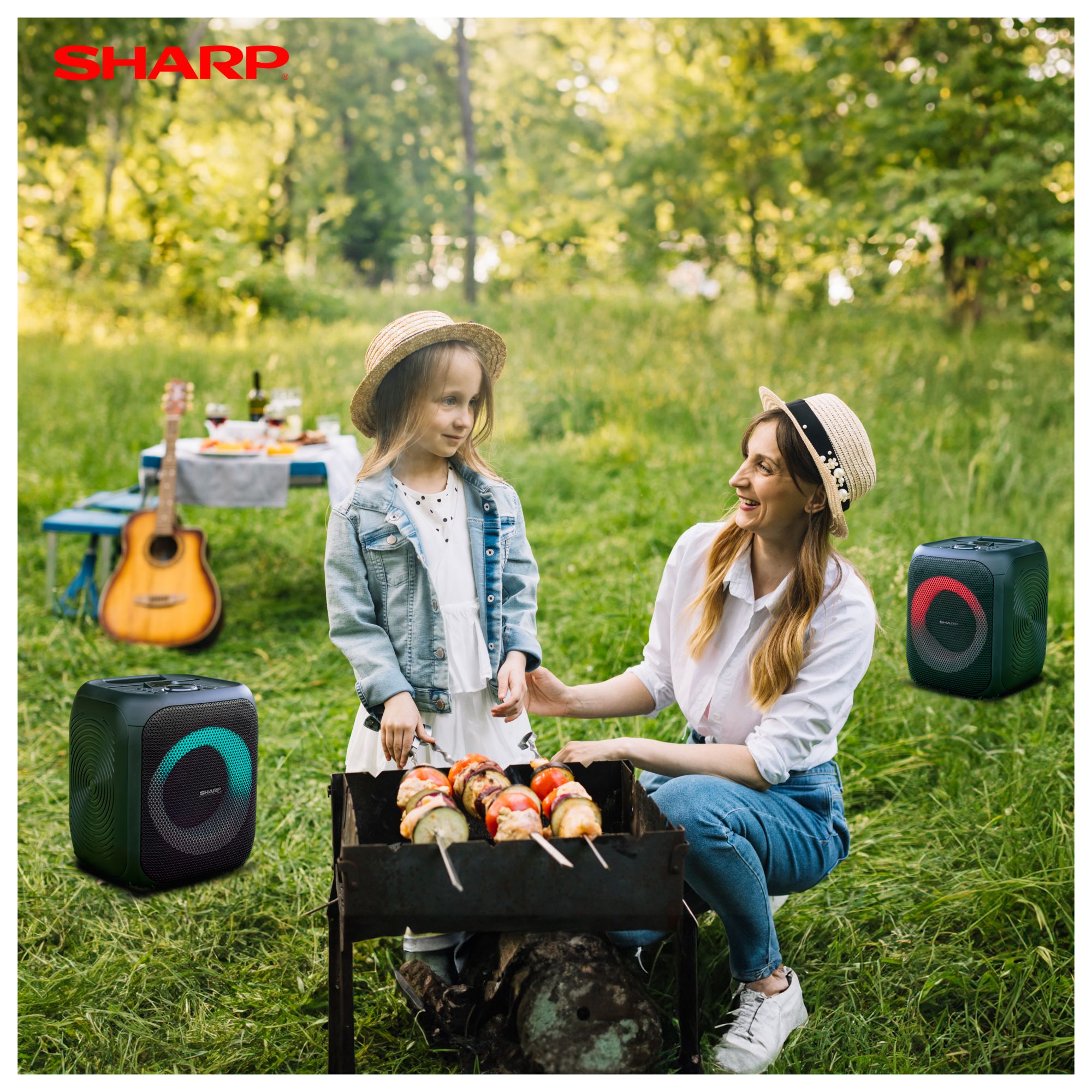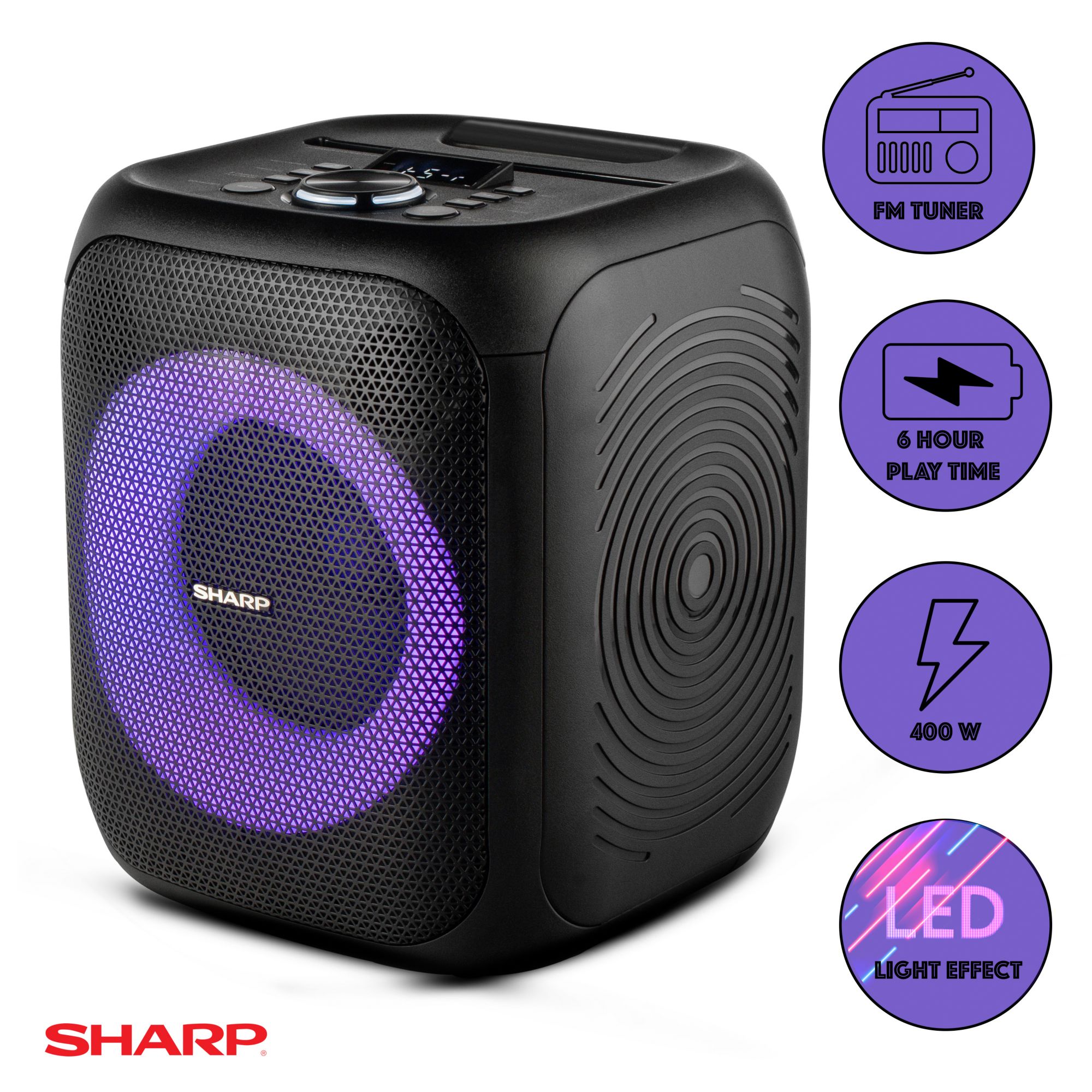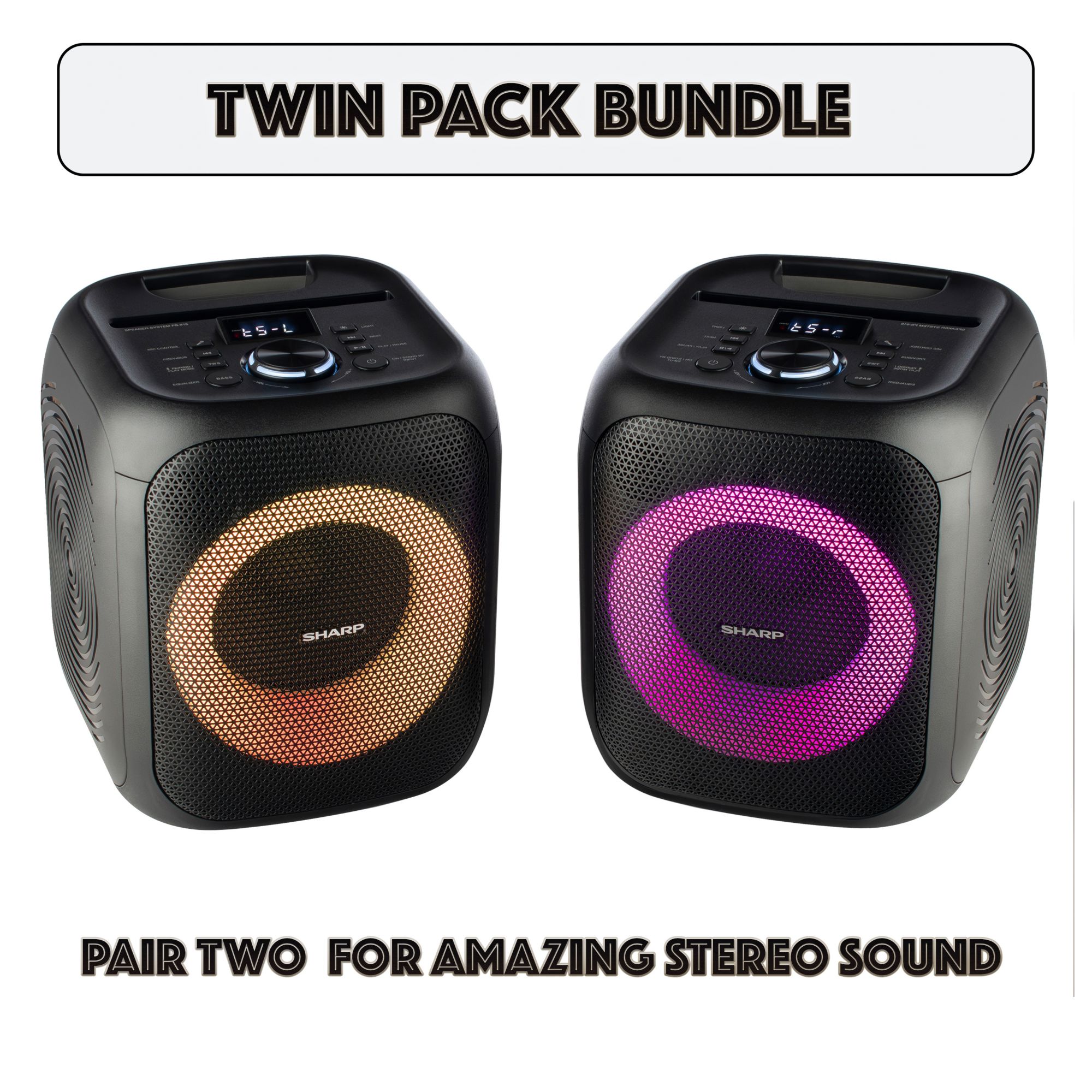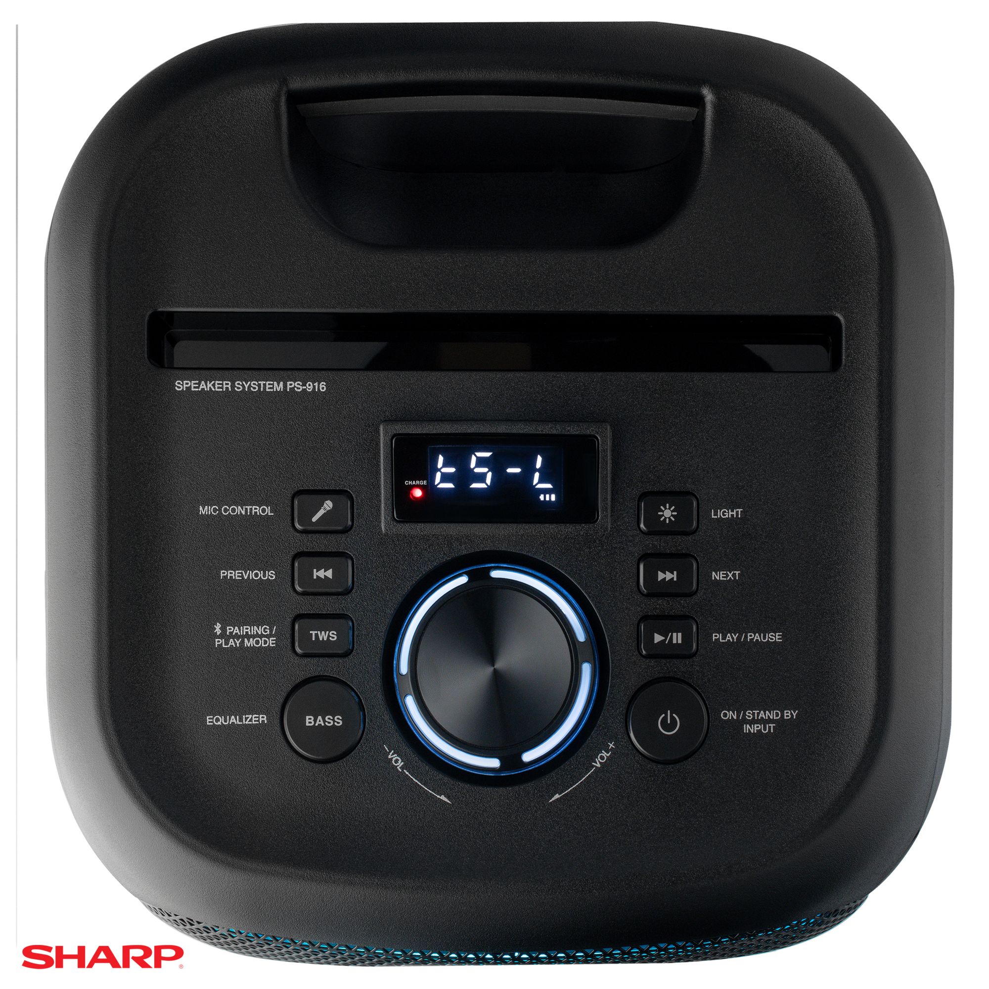 Why settle for a single great party speaker when you can get two. Sharp Audio’s new PS-916 includes two identical Bluetooth speakers packed with features. Each one has an eight-inch woofer and one-inch tweeter delivering 400W of peak power (40W RMS) sound output. In addition to supporting audio playback via Bluetooth sources, each can also play audio from USB flash drives, TF cards, and a 3.5mm aux input. The PS-916 speakers can work independently of each other or use the true wireless stereo (TWS) pairing feature to connect them for accurate stereo sound separation with booming bass and soaring highs. Both speakers put on a great light show with colorful LED ring Lighting. When you're ready for some karaoke, each speaker includes microphone Inputs (microphones sold separately). You can customize the sound of your tunes with a five Preset Equalizer. For parties on the go or outside, the speakers have you covered with long-lasting rechargeable batteries. An integrated handle also helps carry the PS-916 with you. With these features, great sound is only a moment away.