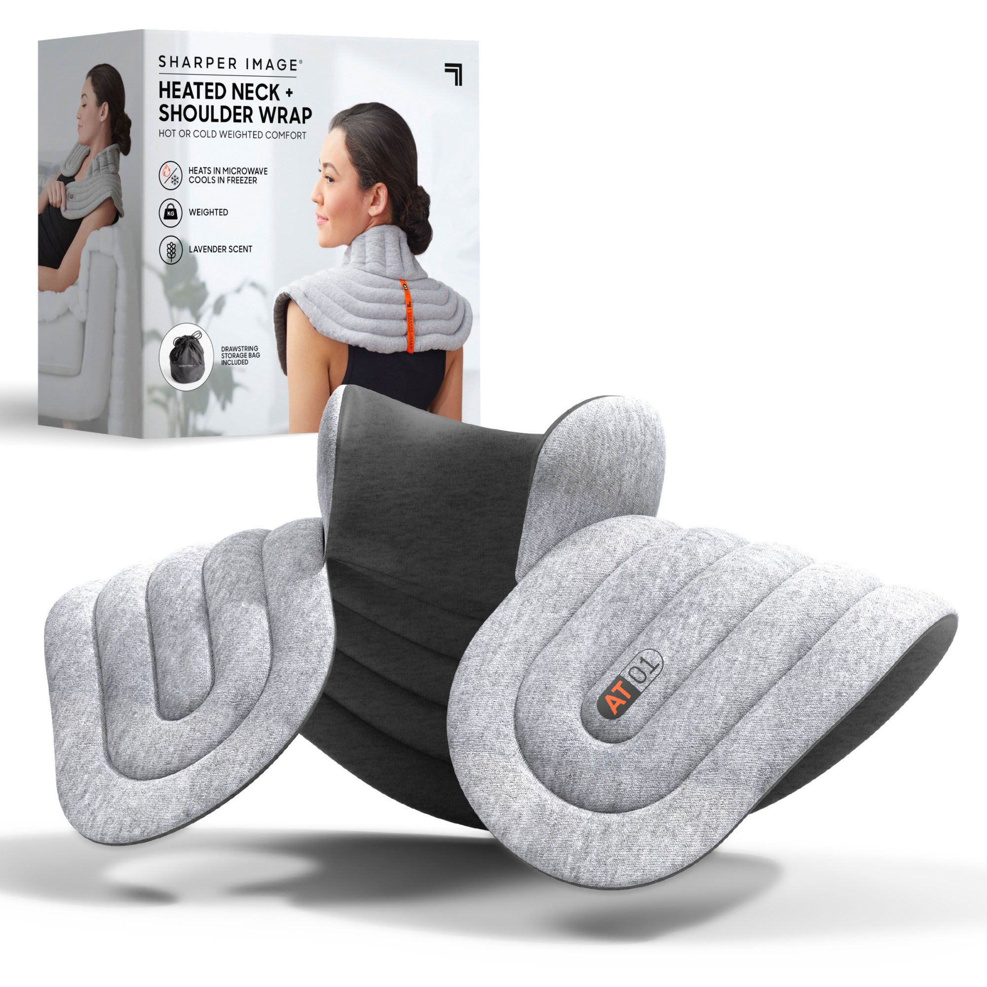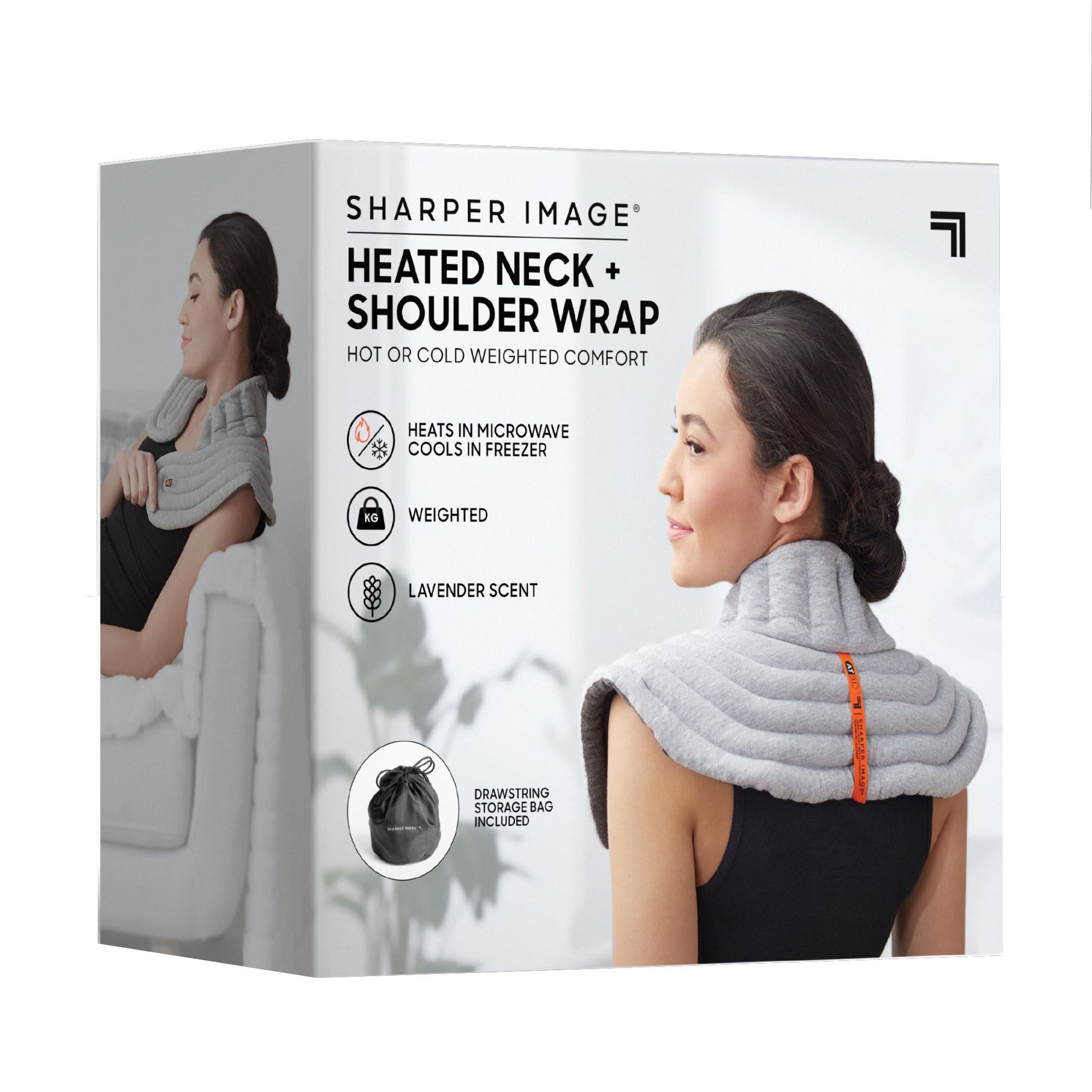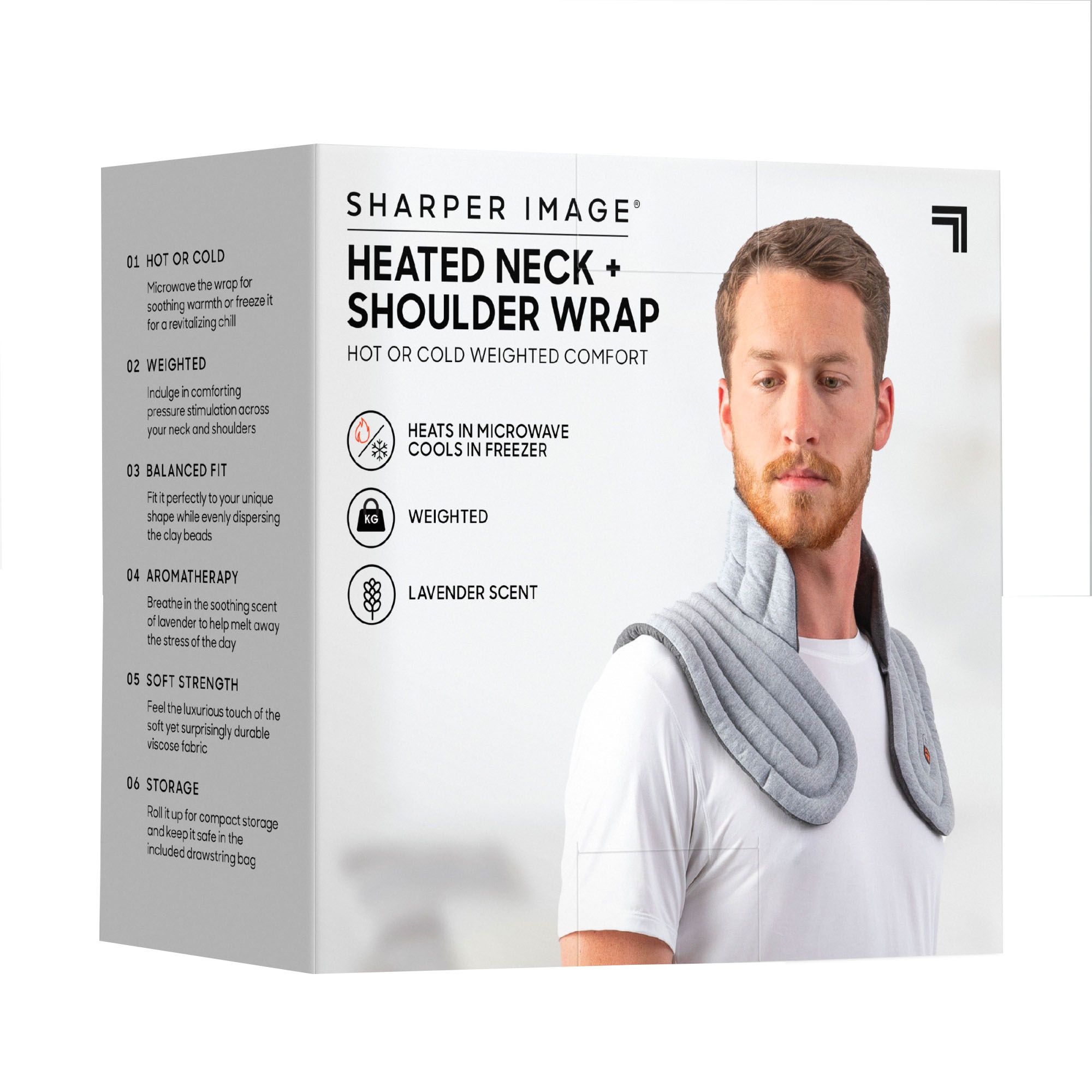 Sharper Image Aromatherapy Neck & Shoulder Wrap combines heat and cooling therapy with aromatherapy for a total spa relaxation experience in a compact package. Relieve muscle stress, pain, and tension, or reduce inflammation, then unwind with the soothing lavender scent. The wrap is made from soft and durable fabric for comfortable relief that lasts. The entire wrap is weighted to promote relaxing pressure stimulation across your neck and shoulders to provide instant relief after a long day. Designed for regular use by one or several persons, the wrap's unique shape allows it to adapt to any body type. It drapes comfortably around/over the neck and shoulders to apply heat or cold therapy to your muscles (use caution with direct skin contact and heat or cold).