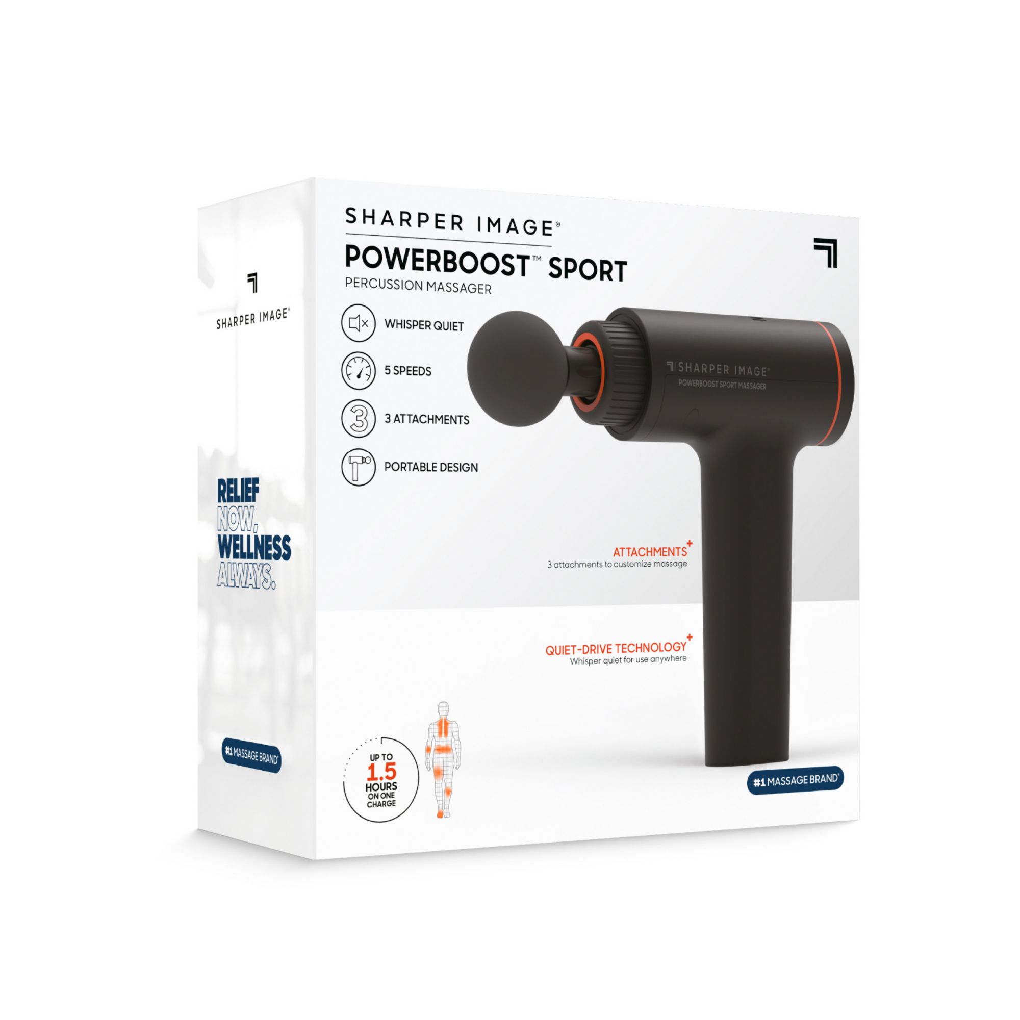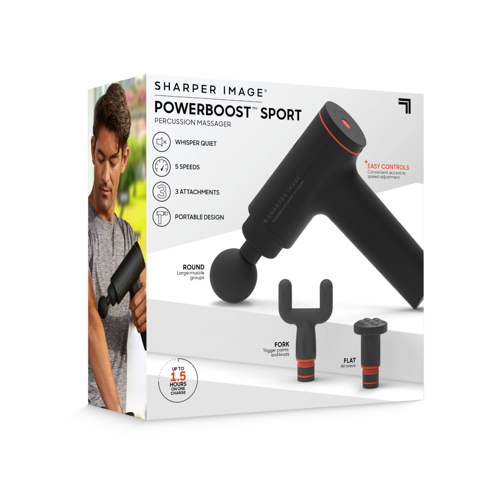 The Sharper Image Powerboost Deep Tissue Massager Sport PDQ is a light weight portable design, allowing for everyday use. The five speeds lets you customize the intensity.