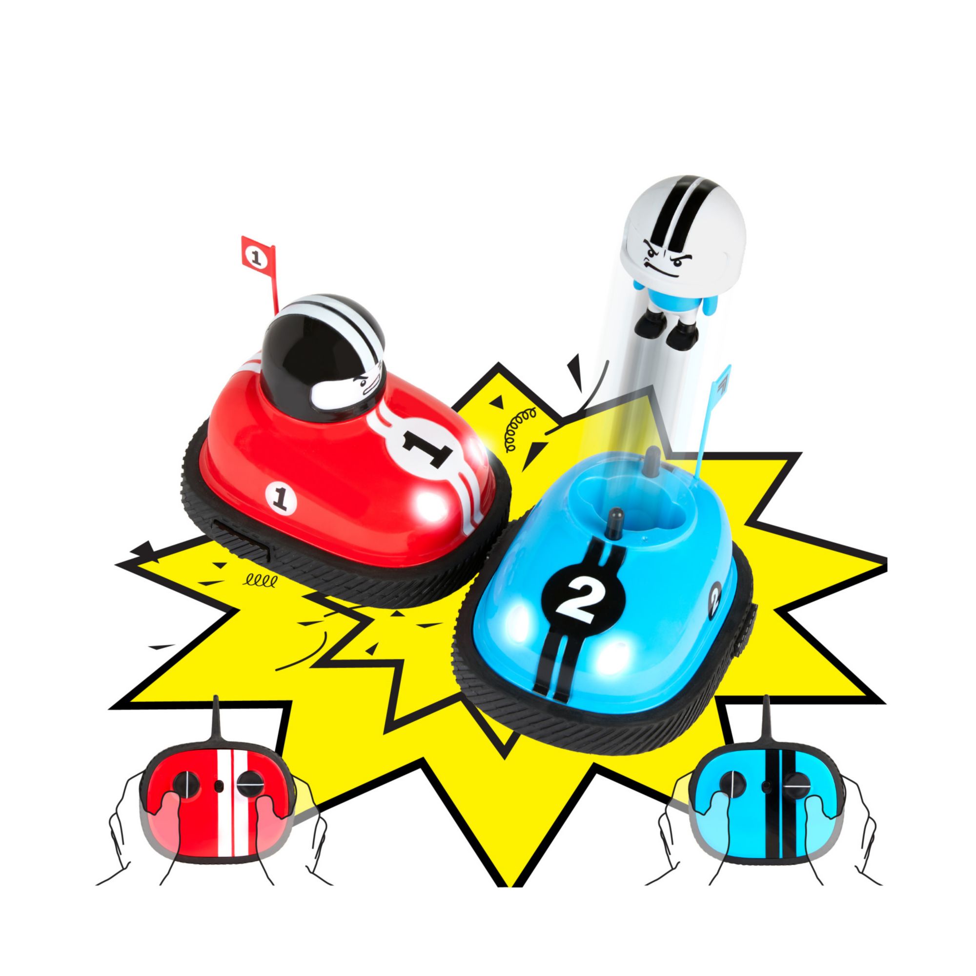 Play Head to Head: Battle it out with a friend and play for the win in fast-paced bumper duels. The set comes with two cars and two remotes for exciting two-player action