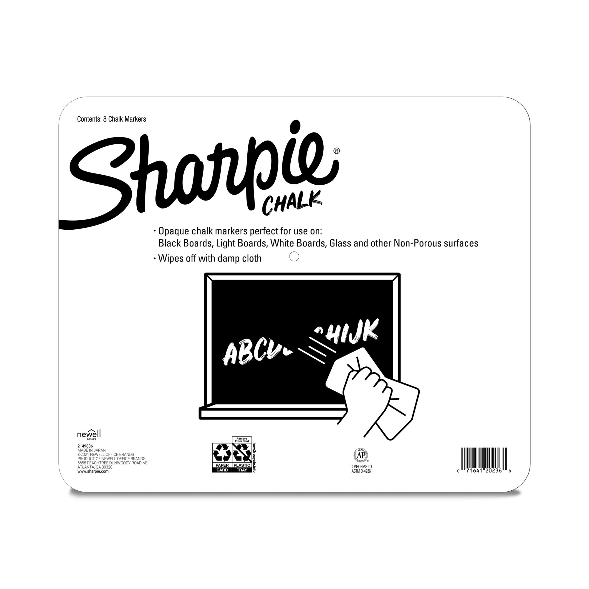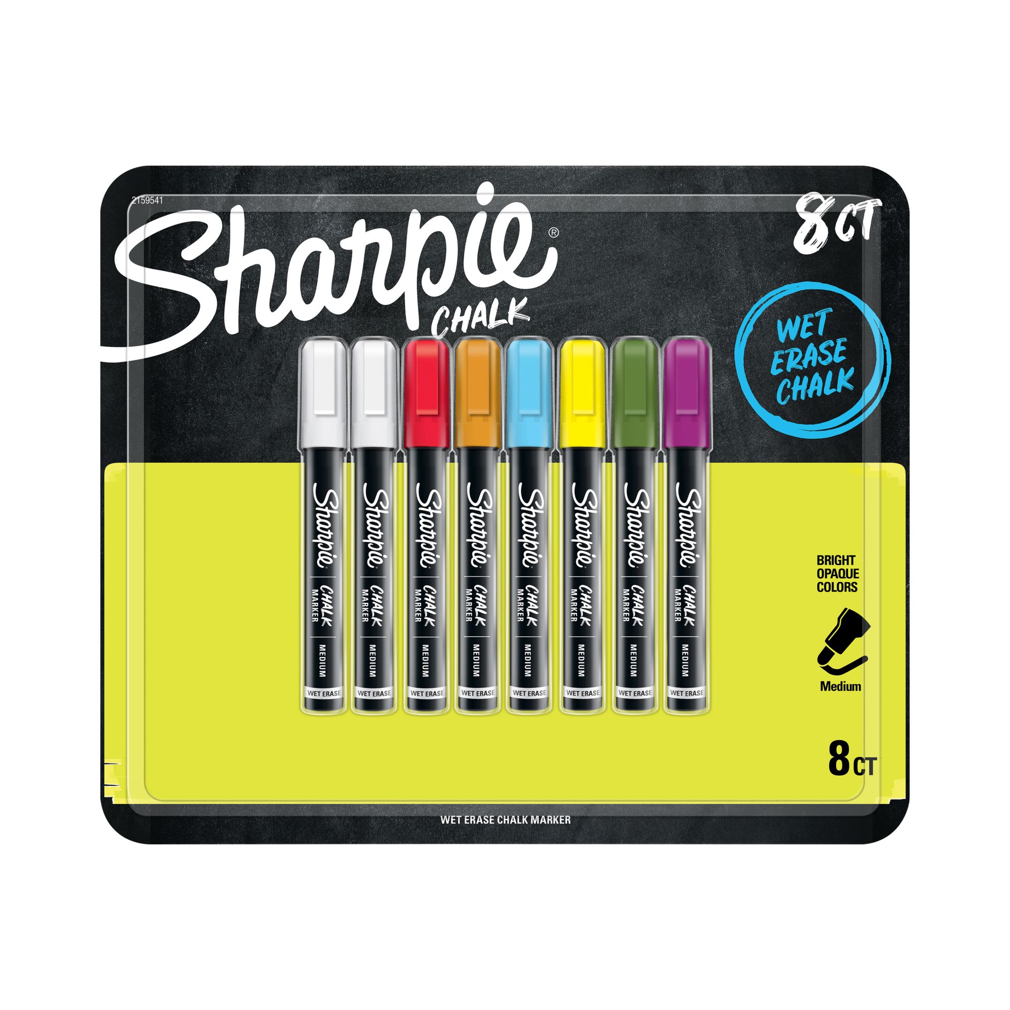 Make your writing or drawing stand out with Sharpie wet erase chalk marker. This brilliant chalkboard marker marks brightly on blackboards, light boards, whiteboards, windows, glass, and more. And with a damp cloth, it wipes off for convenient cleanup. Depend on this marker for eye-catching displays or writing in the classroom, your business, or home. Great for seasonal activities, school projects, household decorations, or business use in a wide variety of industries. Partner with a writing brand to make your unique expressions come to life. Smooth Writing experience that shows up beautifully on a wide array of surfaces. No more dealing with messy chalk residue on your hands. Add this product to your new favorite's list today. The grip is similar to standard Sharpie marker today, which allows for a better experience than a standard dry chalk stick today. Pack includes several assorted colors and is a medium tip.