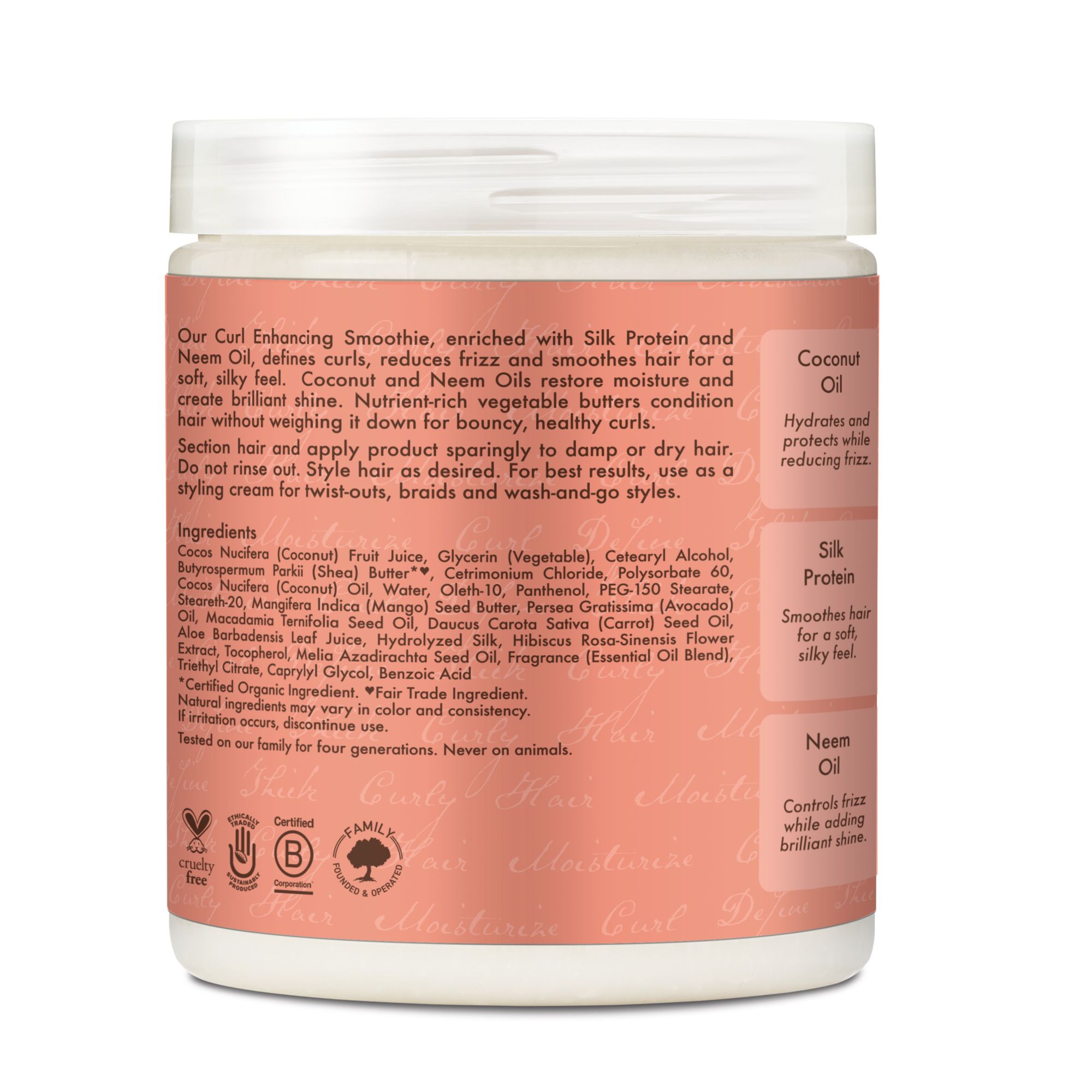 Coconut and Hibiscus curl enhancing smoothie styling cream Formulated for wavy, curly hair Made from natural ingredients Coconut oil used in this moisturizing formula hydrates and protects hair against breakage while replenishing lost oils Neem oil imparts shine and adds volume and definition to dull, lifeless curls and coils Silk protein softens locks, making them irresistibly smooth and easy to manage Includes 20-oz. of curl enhancing smoothie styling cream