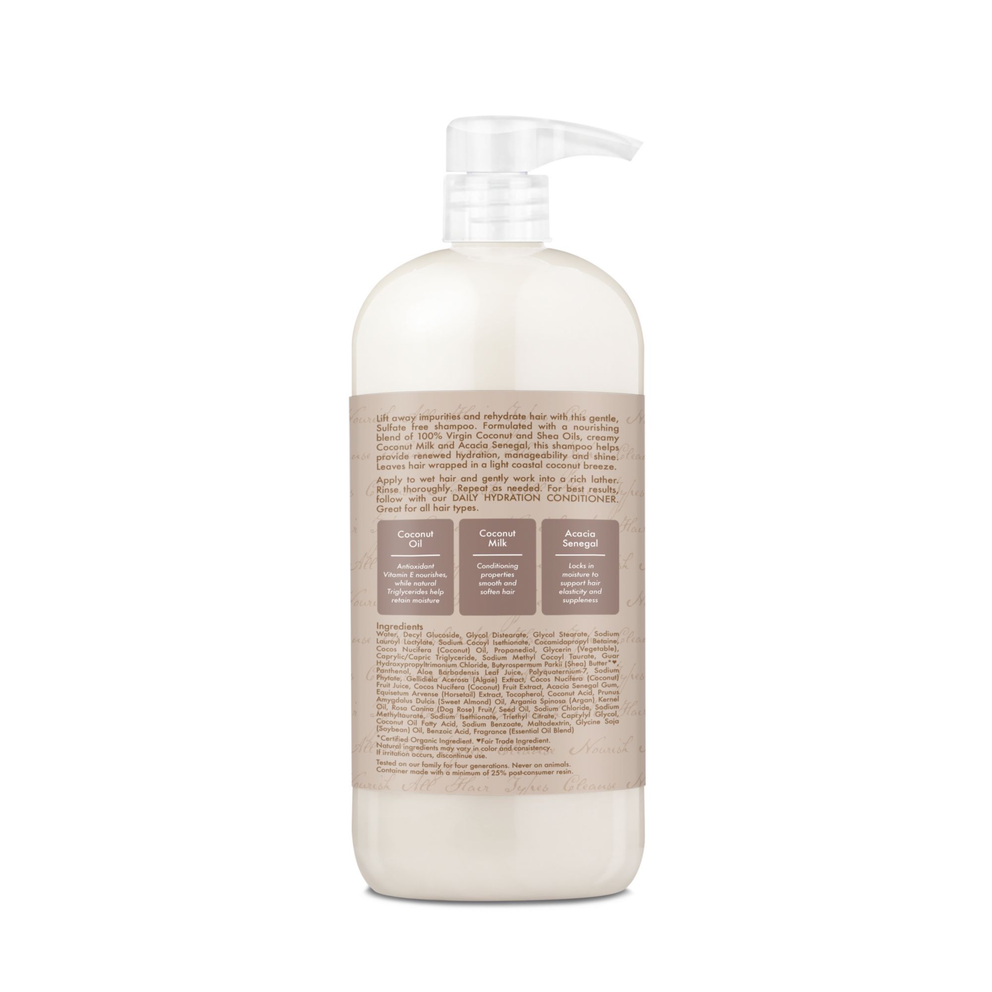 Lift away impurities and re-hydrate hair with this gentle, sulfate free shampoo. Great for all hair types, SheaMoisture 100% Virgin Coconut Oil Shampoo can be used daily to cleanse and restore parched hair. Formulated with a nourishing blend of 100% Virgin Coconut and Shea Oils, creamy Coconut Milk and Acacia Senegal, this shampoo helps to provide renewed hydration, manageability and shine. Leaves hair wrapped in a light coastal coconut breeze. The key ingredients in this sulfate free shampoo are Coconut Oil, Coconut Milk, and Acacia Senegal. This shampoo is formulated with no silicone, no sulfates, no parabens, no phthalates, no mineral oil or petrolatum. It's been tested on the SheaMoisture family for generations and never on animals.