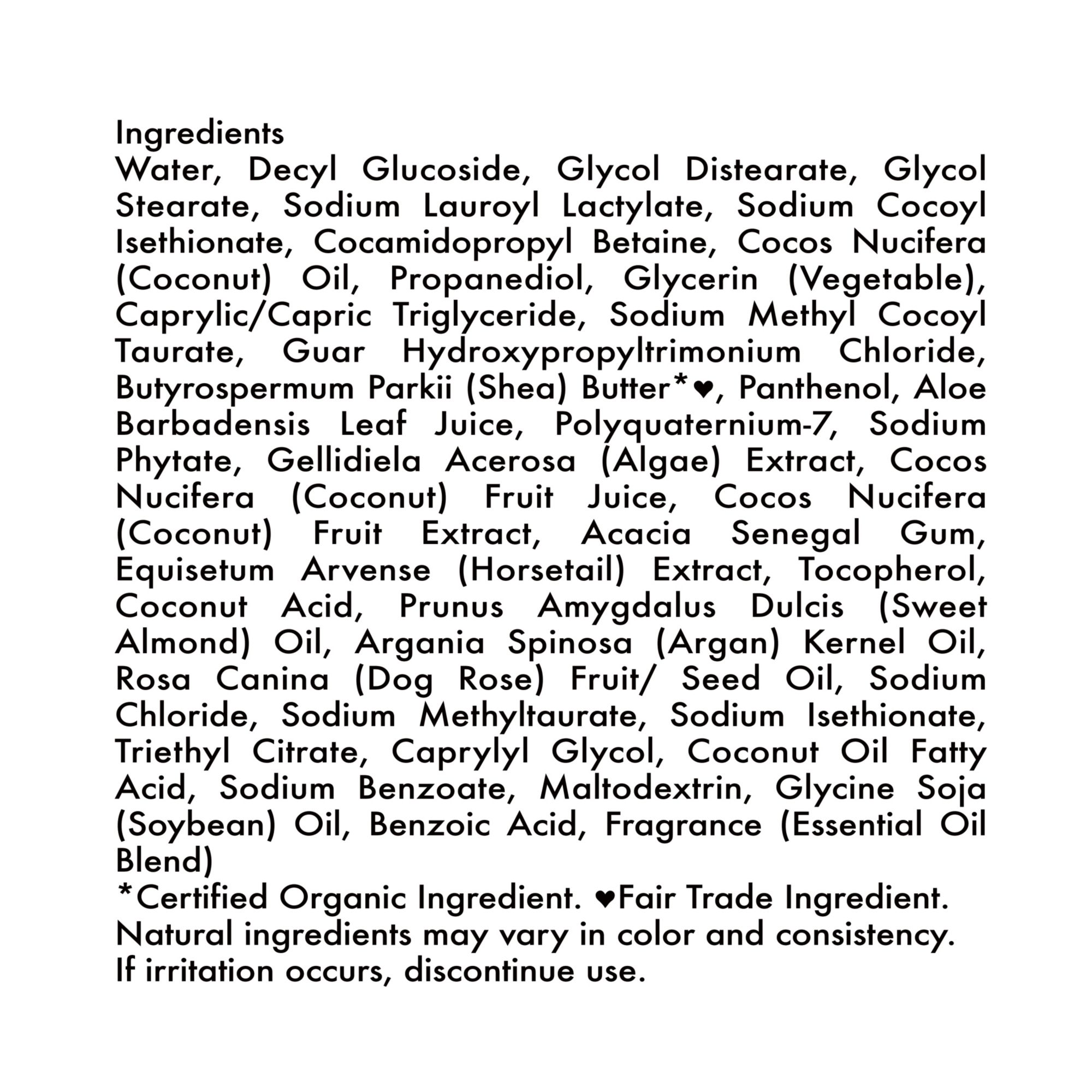 Nourishing blend of 100% Virgin Coconut and Shea Oils, creamy Coconut Milk and Acacia Senegal for renewed hydration, manageability and shine