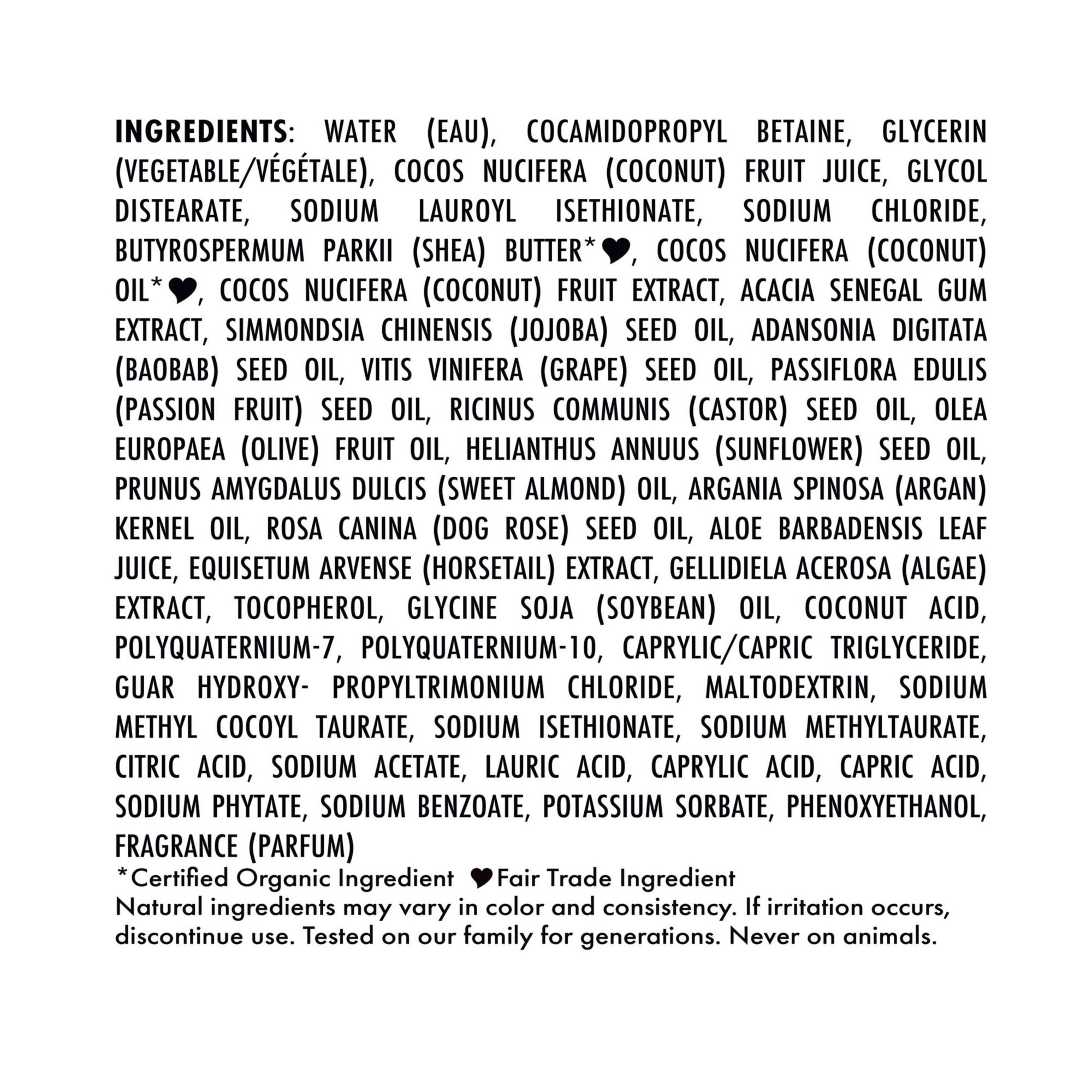 Formulated with a nourishing blend of 100% virgin coconut, coconut milk, acacia Senegal and fair trade shea butter