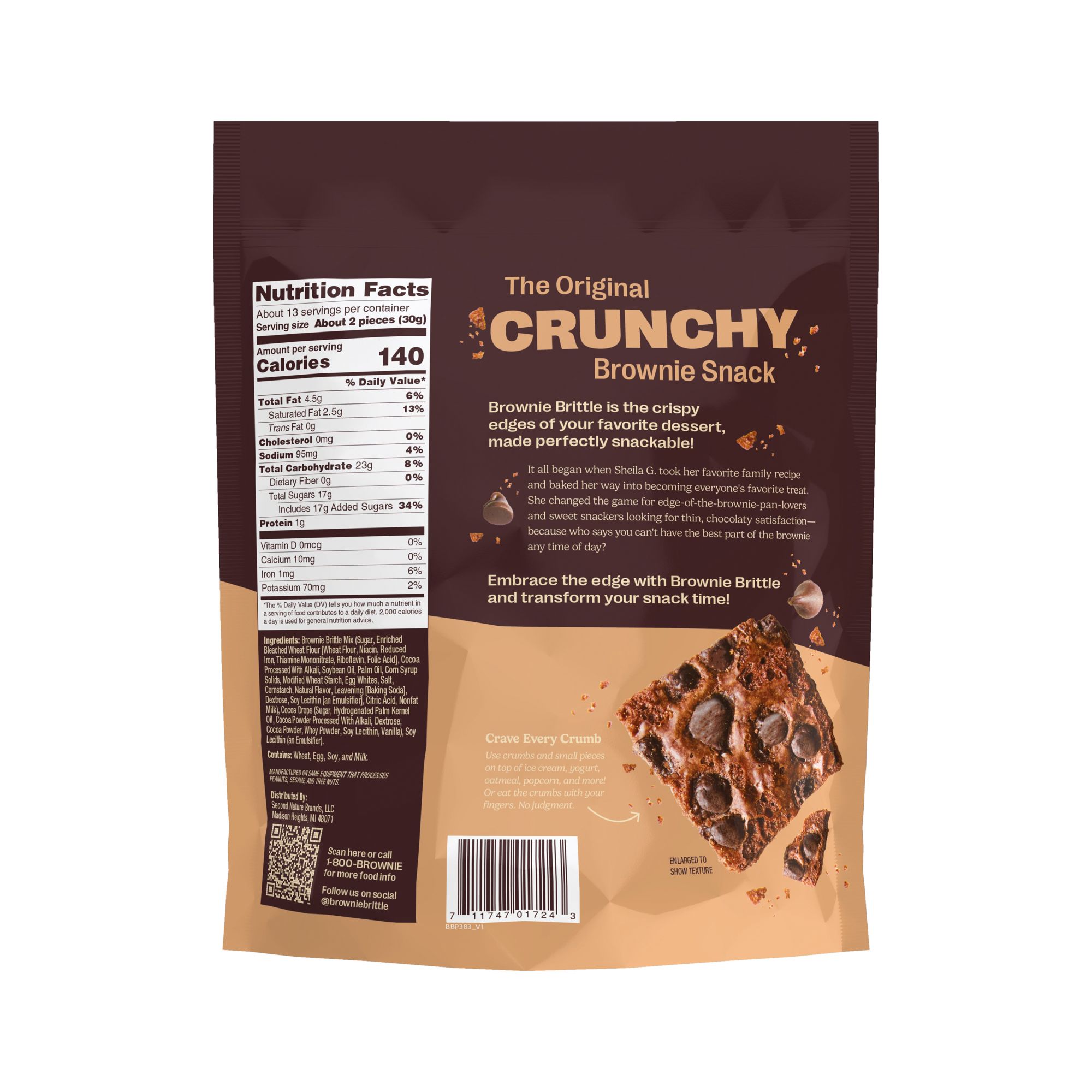 Includes chocolate chip brownie brittle snacks, 14 oz.