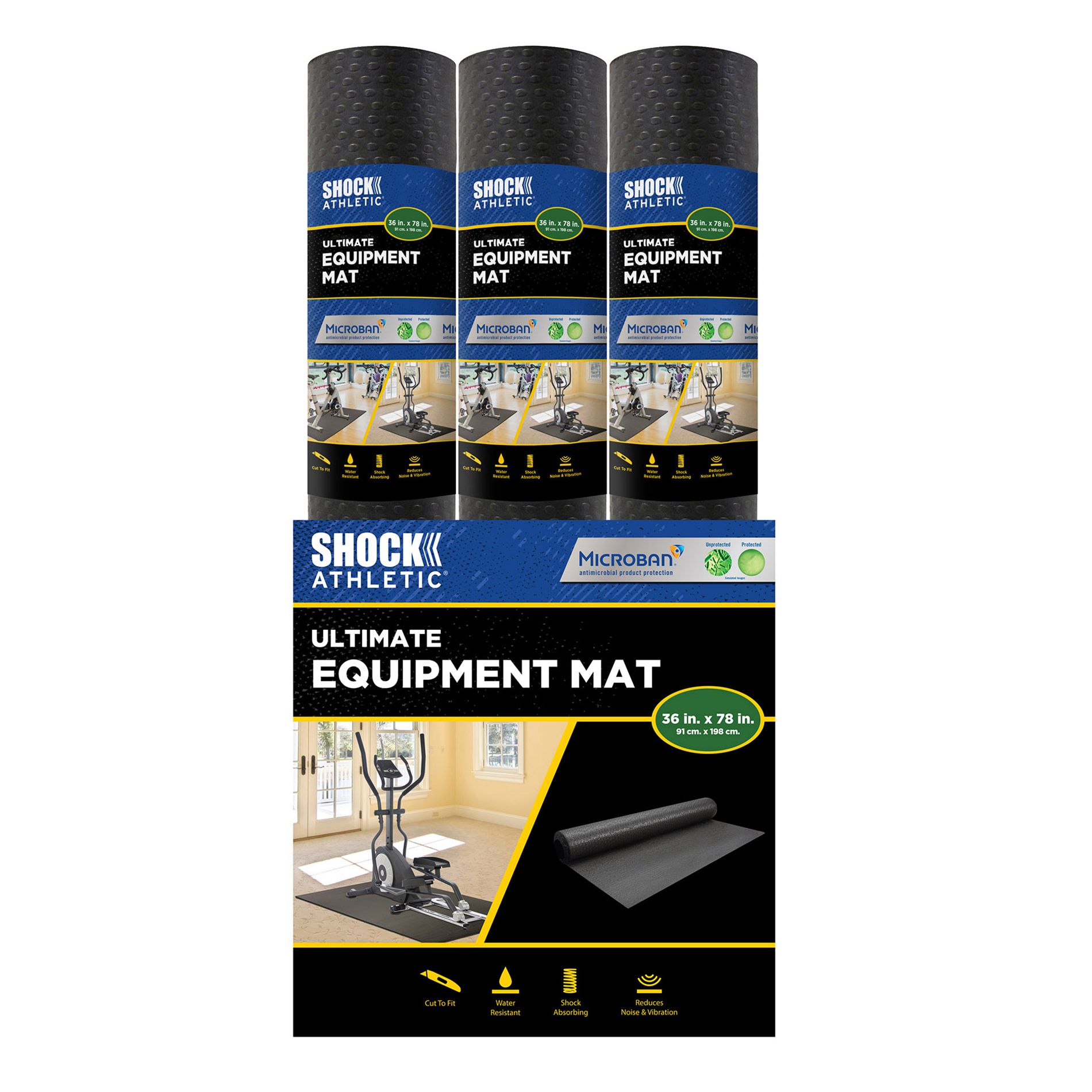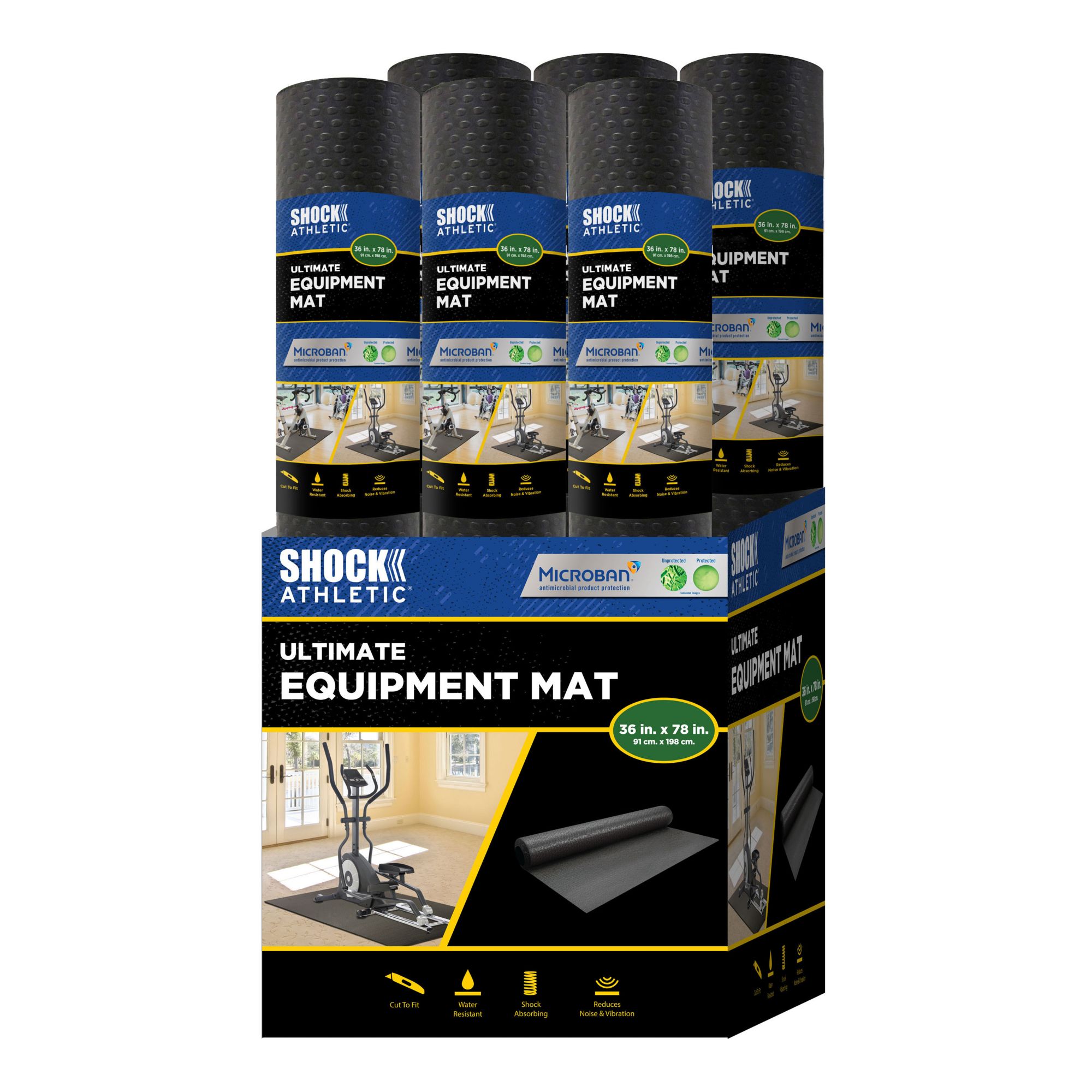 The Shock Athletic Ultimate Equipment Mat helps reduce noise and vibration during workouts. Just place the mat under your exercise equipment and start working out. The mat will protect your floors from scratches and damage associated with most exercise machines. Infused with Microban antimicrobial technology, the mat is water resistant, easy to clean and can be cut to fit any space.