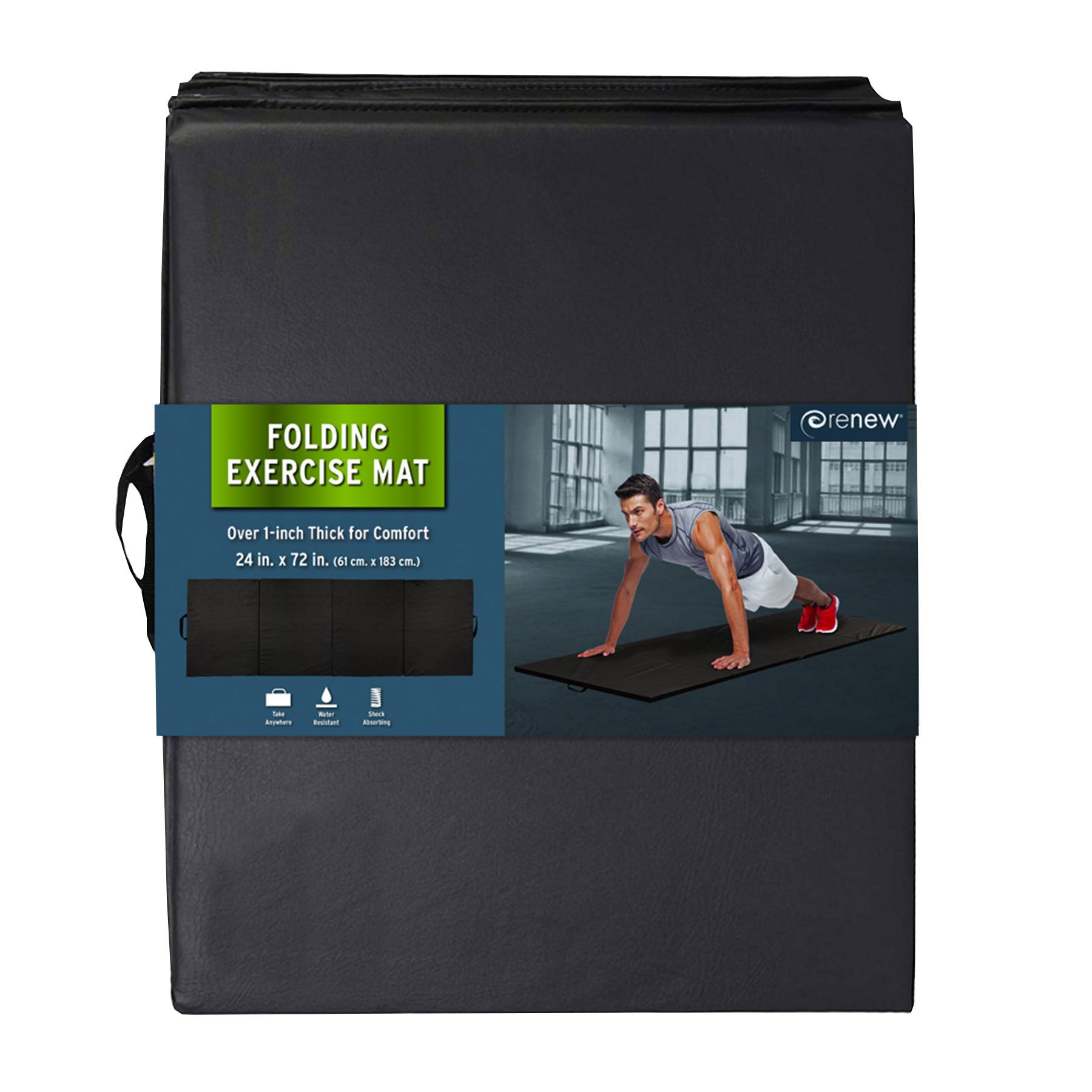Includes 24” x 1.25” x 72” folding exercise mat