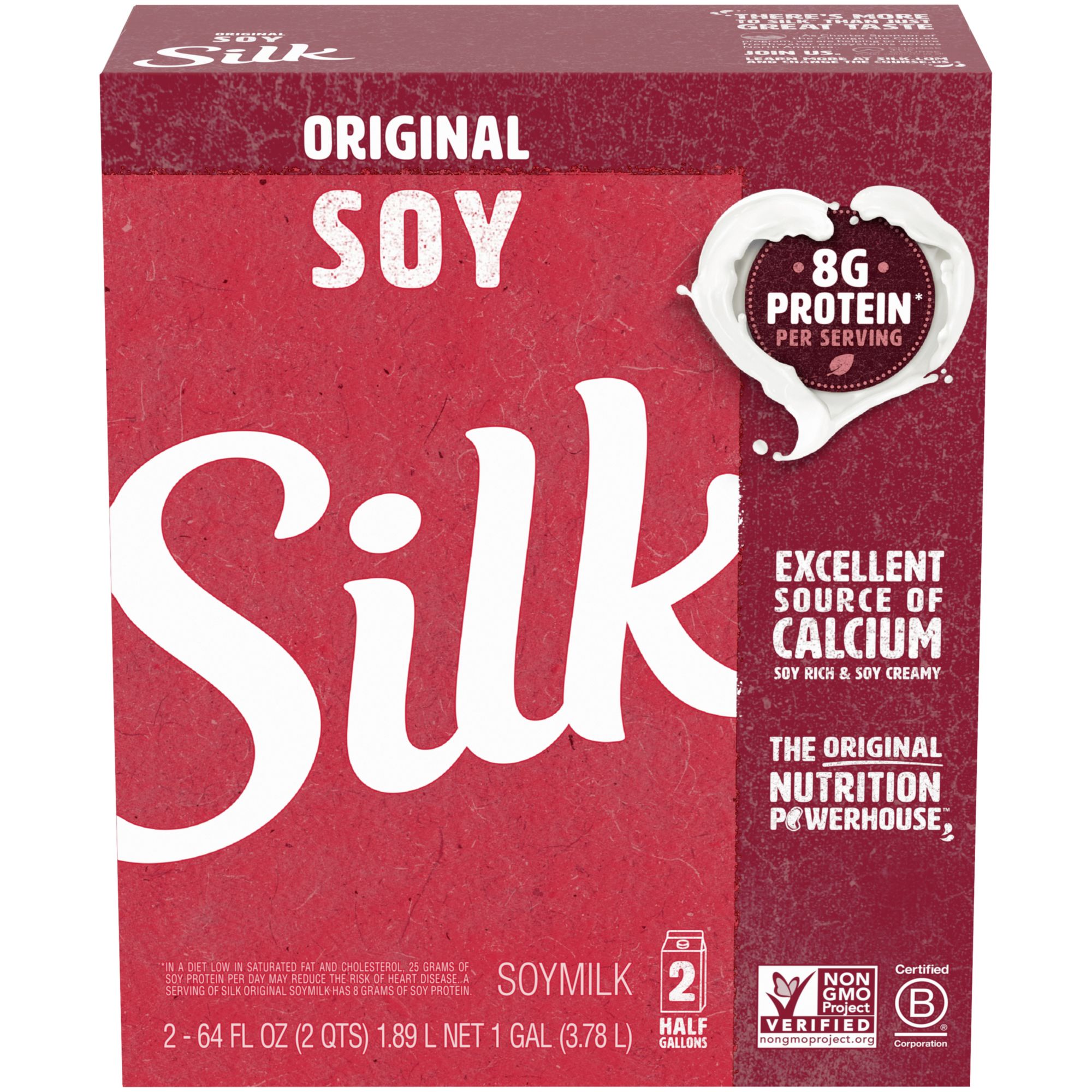 Good source of plant protein 50% more calcium than dairy milk Non-GMO Project Verified Includes two 64-fl.-oz. cartons