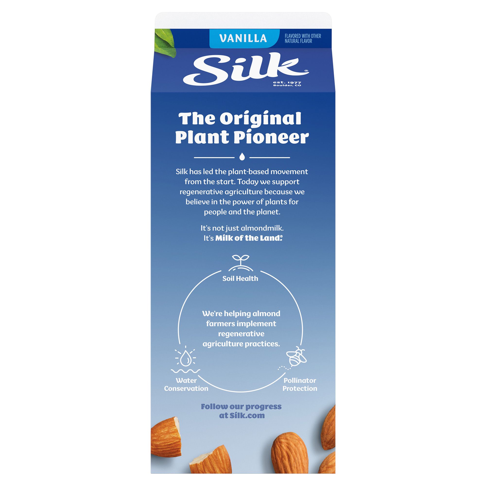 Silk Vanilla Almond Milk contains more calcium than dairy milk. Mix it with your coffee, add to your favorite recipes, or have it straight from the carton.