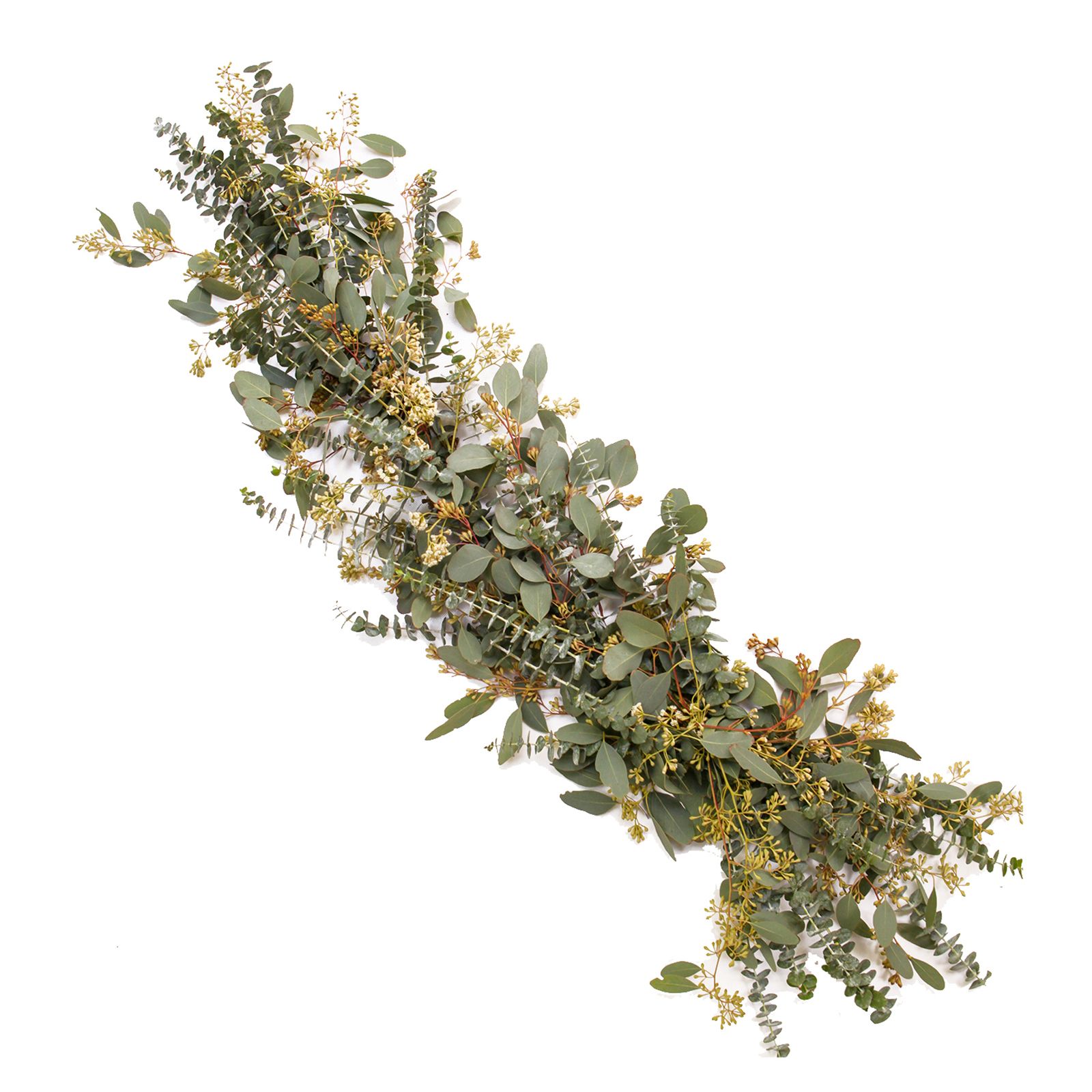 Decorate your home this holiday season with this lush fresh garland. The Silver Eucalyptus garland is handmade with fresh Silver Dollar Eucalyptus, Seeded Eucalyptus & Baby Blue Eucalyptus.