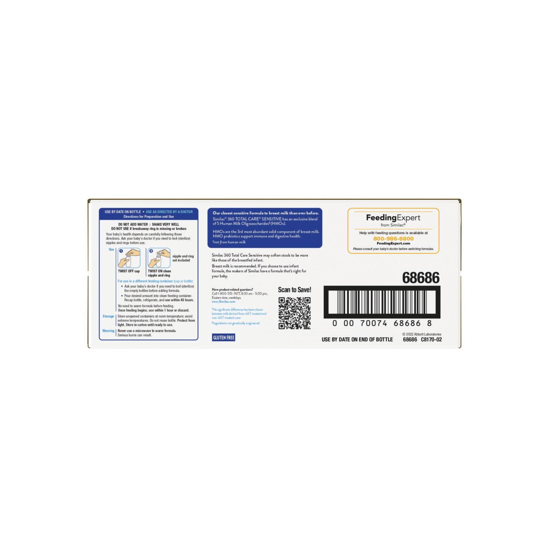 Similac 360 Total Care Sensitive* infant formula is gentle nutrition designed to ease common tummy troubles like fussiness and gas due to lactose sensitivity. It is designed to help support the immune system, brain development, and digestive health. Similac is the #1 brand fed in hospitals. Ingredients in Similac 360 Total Care Sensitive have no artificial growth hormones† and are non-GMO.‡