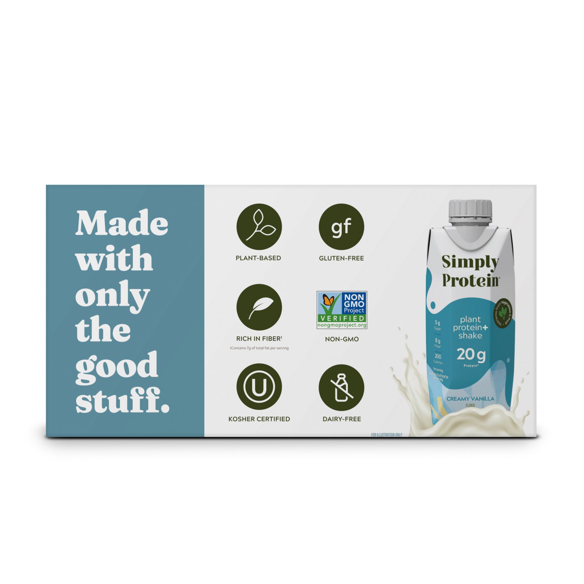 Unbeatable vegan protein. SimplyProtein's Vanilla plant based protein shakes are packed with 20g of pea protein, 200 calories, 8g fiber, and just 5g of sugar. Chill, shake, enjoy! Deliciously smooth and creamy texture in an indulgent rich vanilla flavor. High protein, and a wholesome blend of nutrients from veggie and fruit extracts. To put it simply - fueling you, fuels SimplyProtein. SimplyProtein's passion is to help provide you with plant-based energy to help keep you going physically and mentally, giving you the fuel to be you.