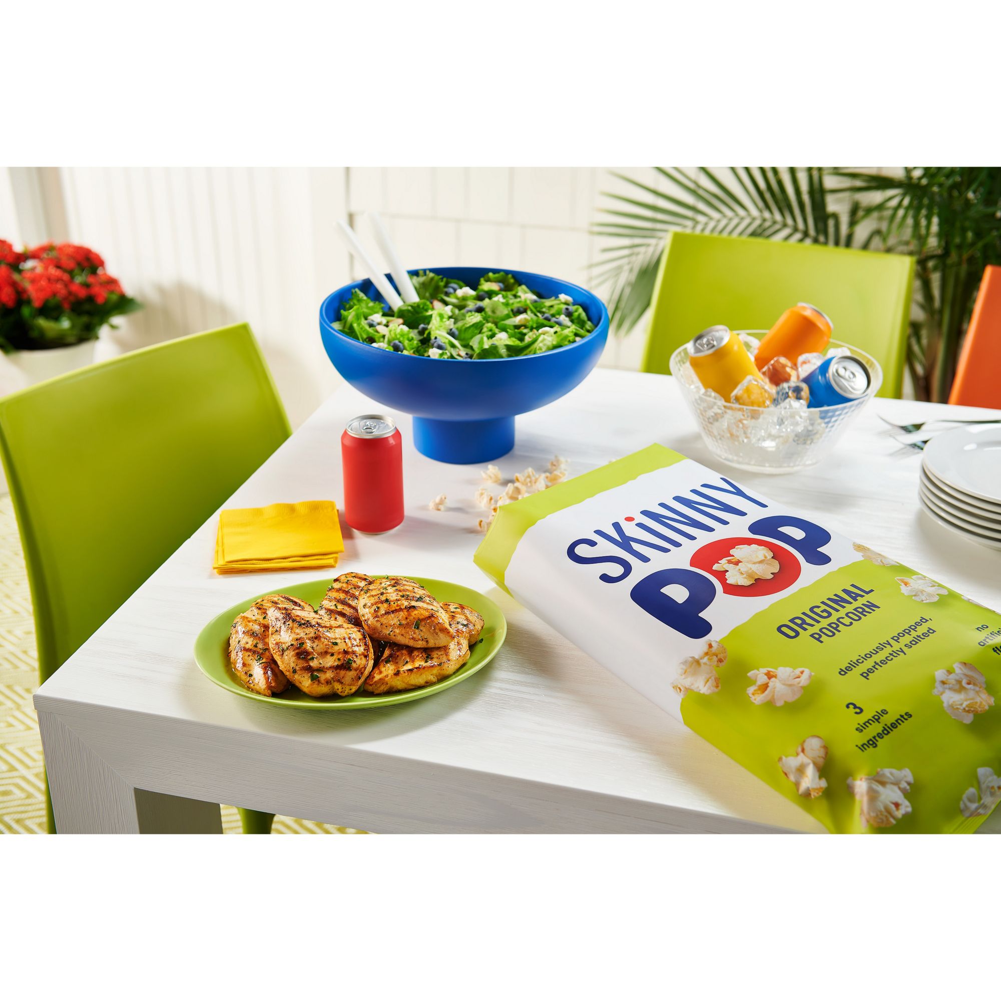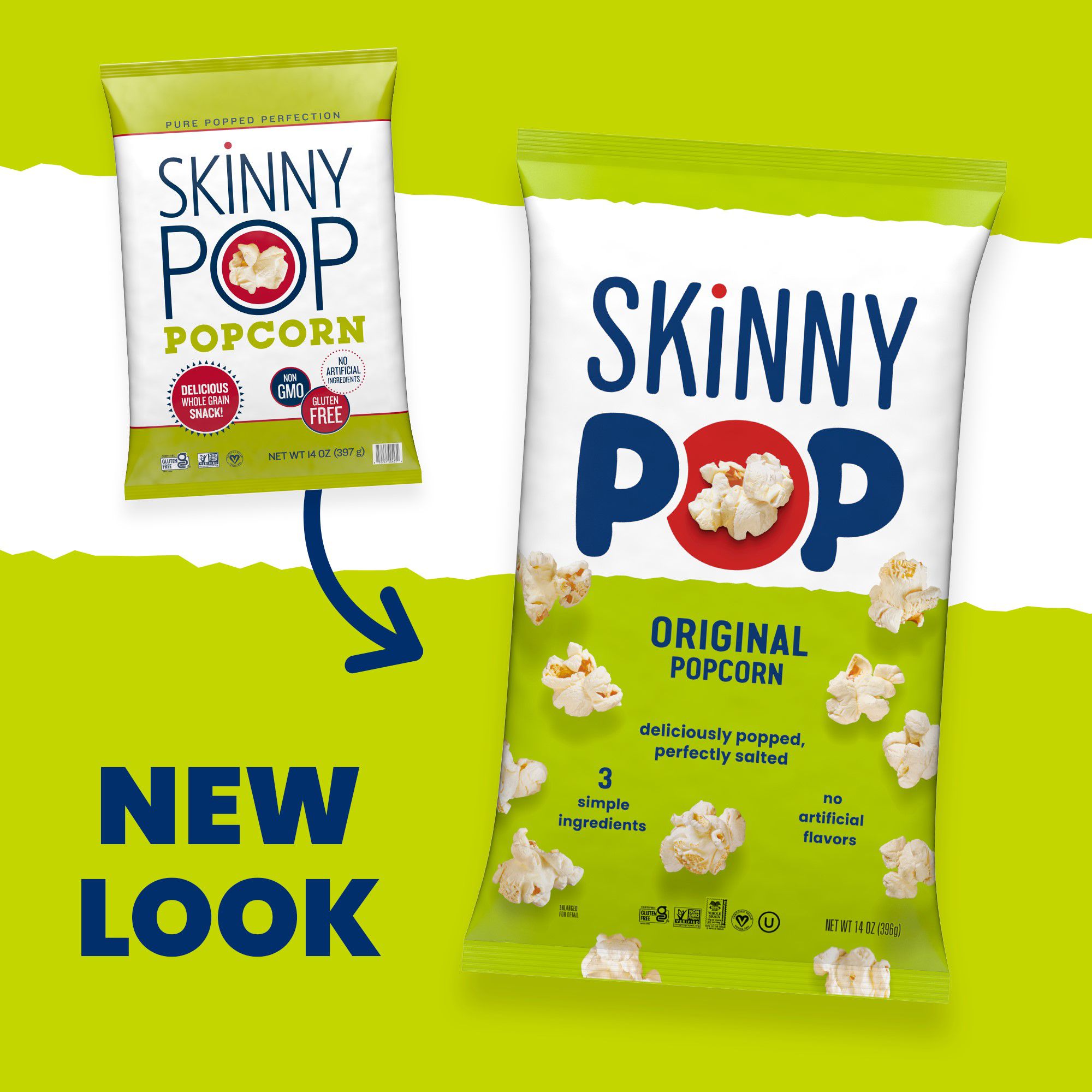 SkinnyPop starts with a premium popcorn kernel, sunflower oil and the perfect amount of salt. From there, Pure Popped Perfection says it all. SkinnyPop popcorn has no GMOs, gluten or preservatives, making SkinnyPop a tasty, guilt-free snack.