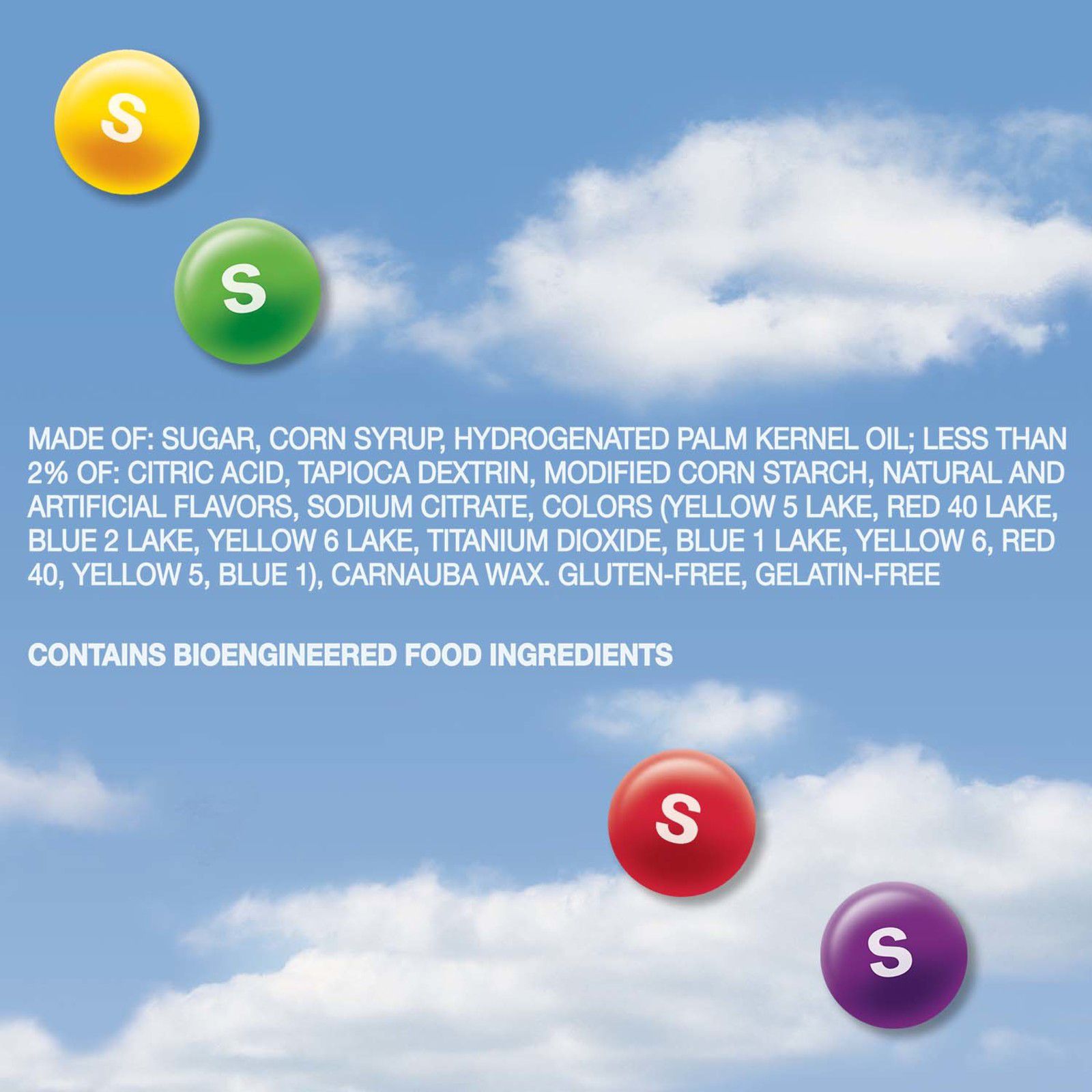 Ingredients: Sugar, Corn Syrup, Hydrogenated Palm Kernel Oil; Less Than 2% Of: Citric Acid, Tapioca Dextrin, Modified Corn Starch, Natural And Artificial Flavors, Colors (Red 40 Lake, Yellow 5 Lake, Blue 2 Lake, Yellow 6 Lake, Titanium Dioxide, Blue 1 Lake, Yellow 6, Red 40, Yellow 5, Blue 1), Sodium Citrate, Carnauba Wax.