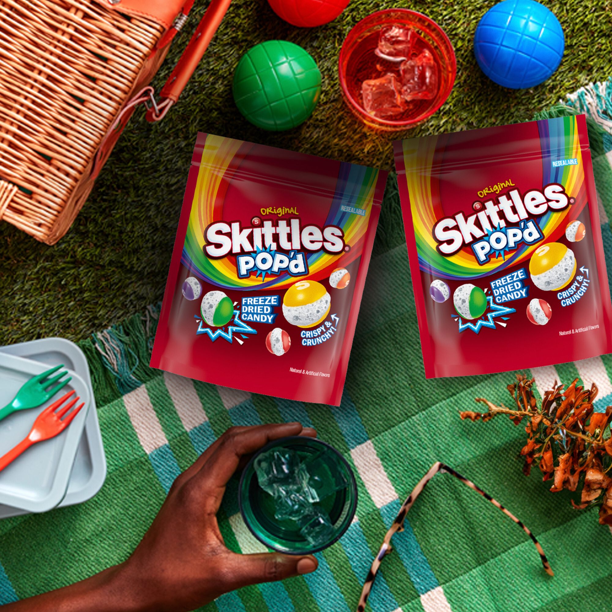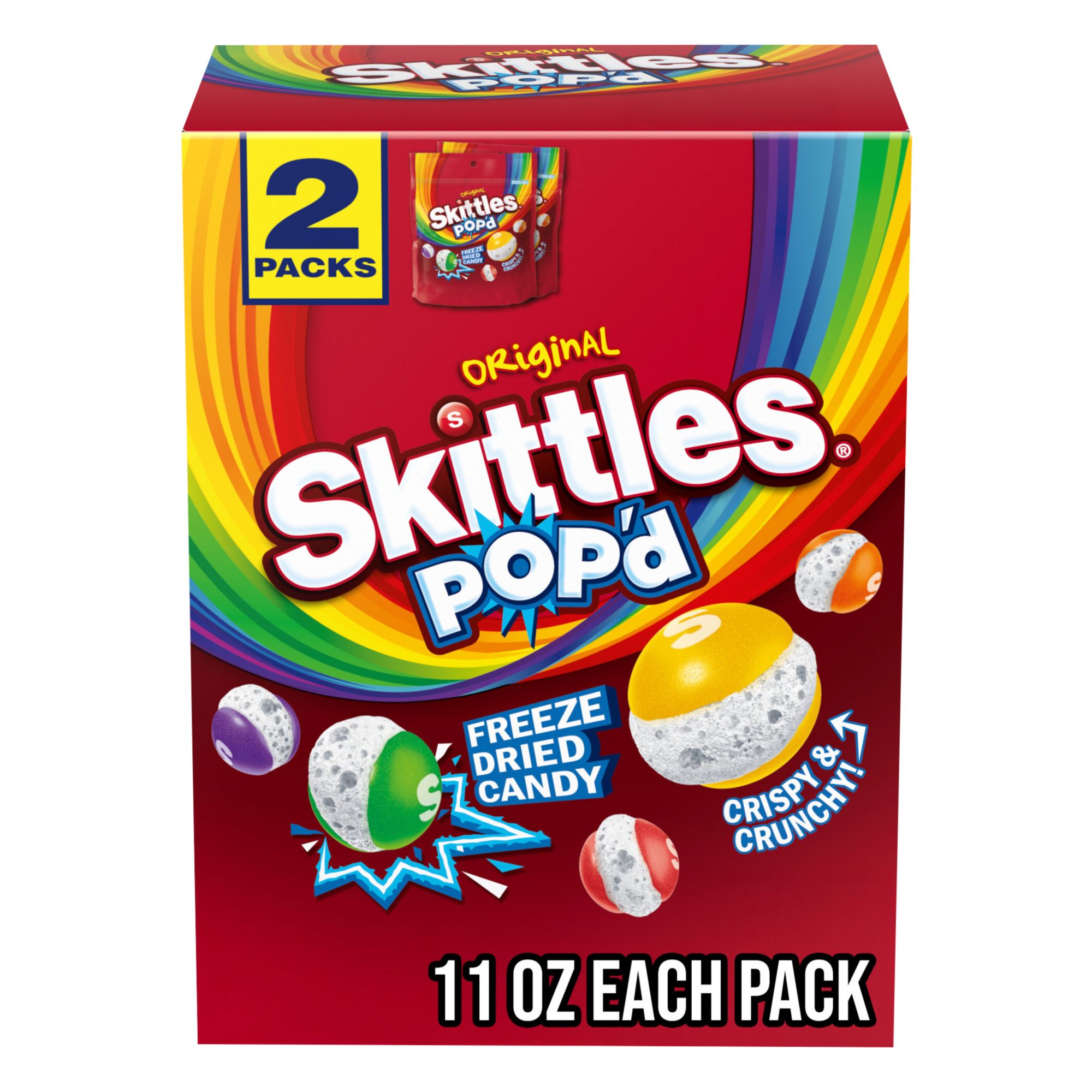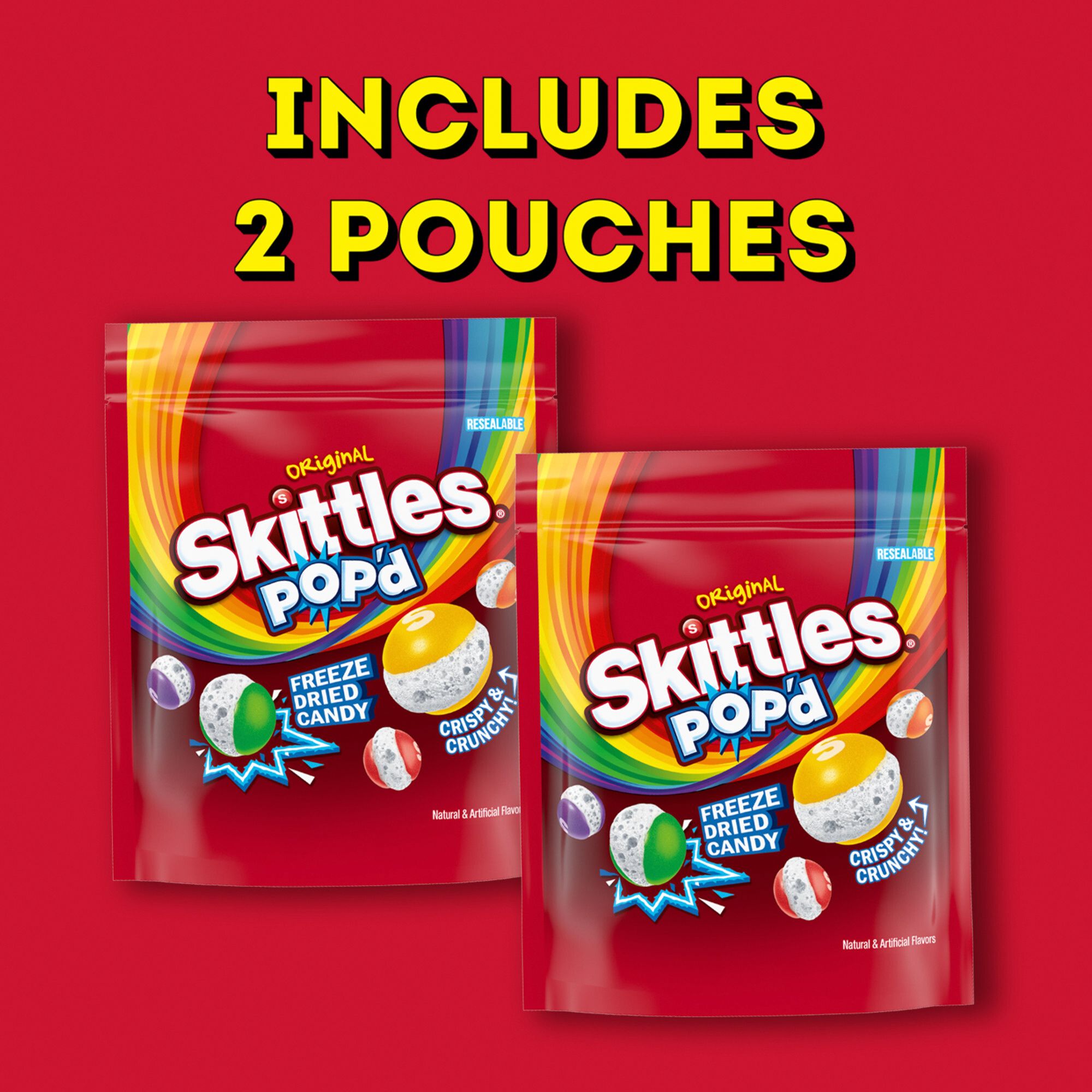 Contains two (2) 5.5-ounce resealable bag of Skittles Pop'd Originals Freeze Dried Candy