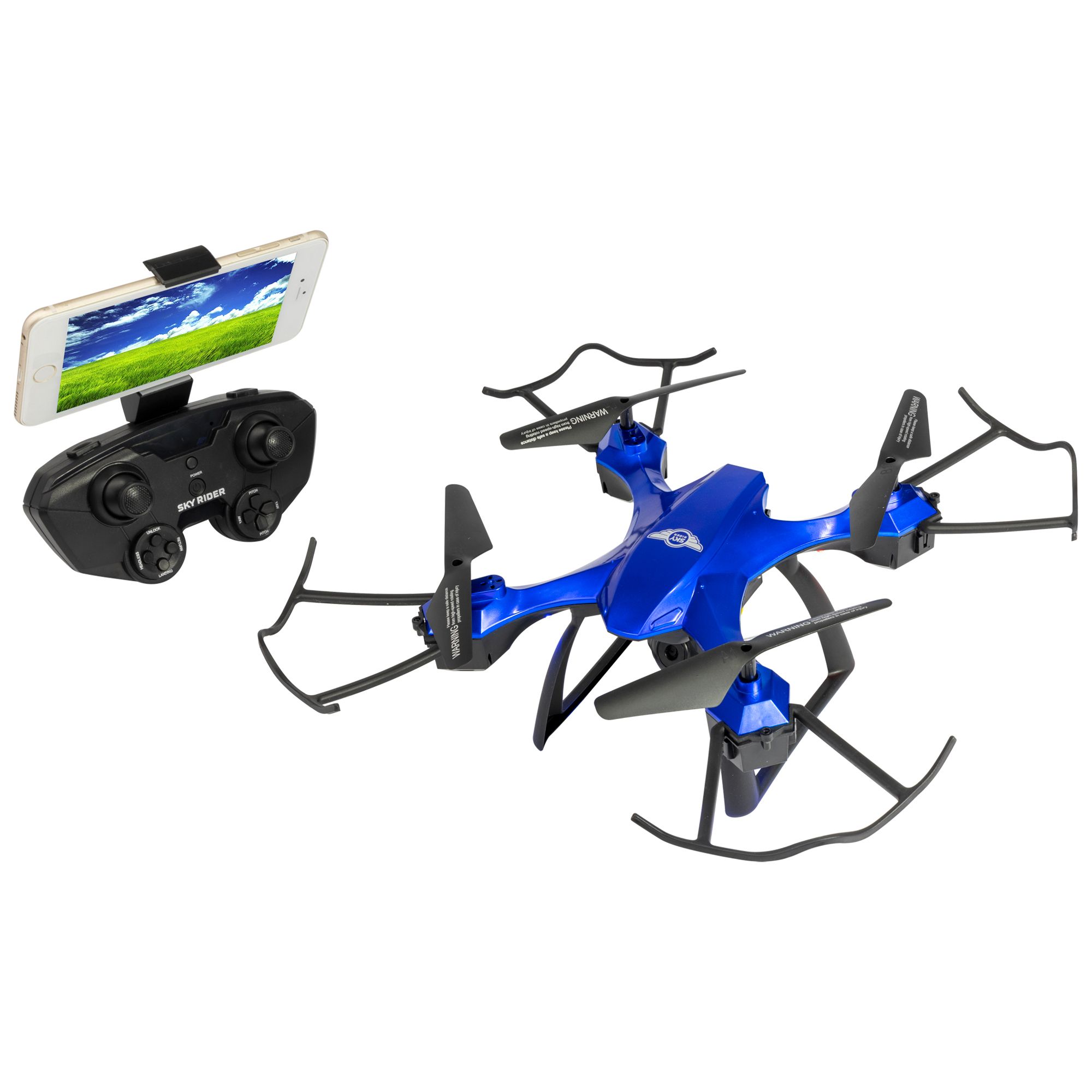 Sky Rider Helios Quadcopter Drone with Wi-Fi Camera and VR Goggle Value Pack, Black and Blue