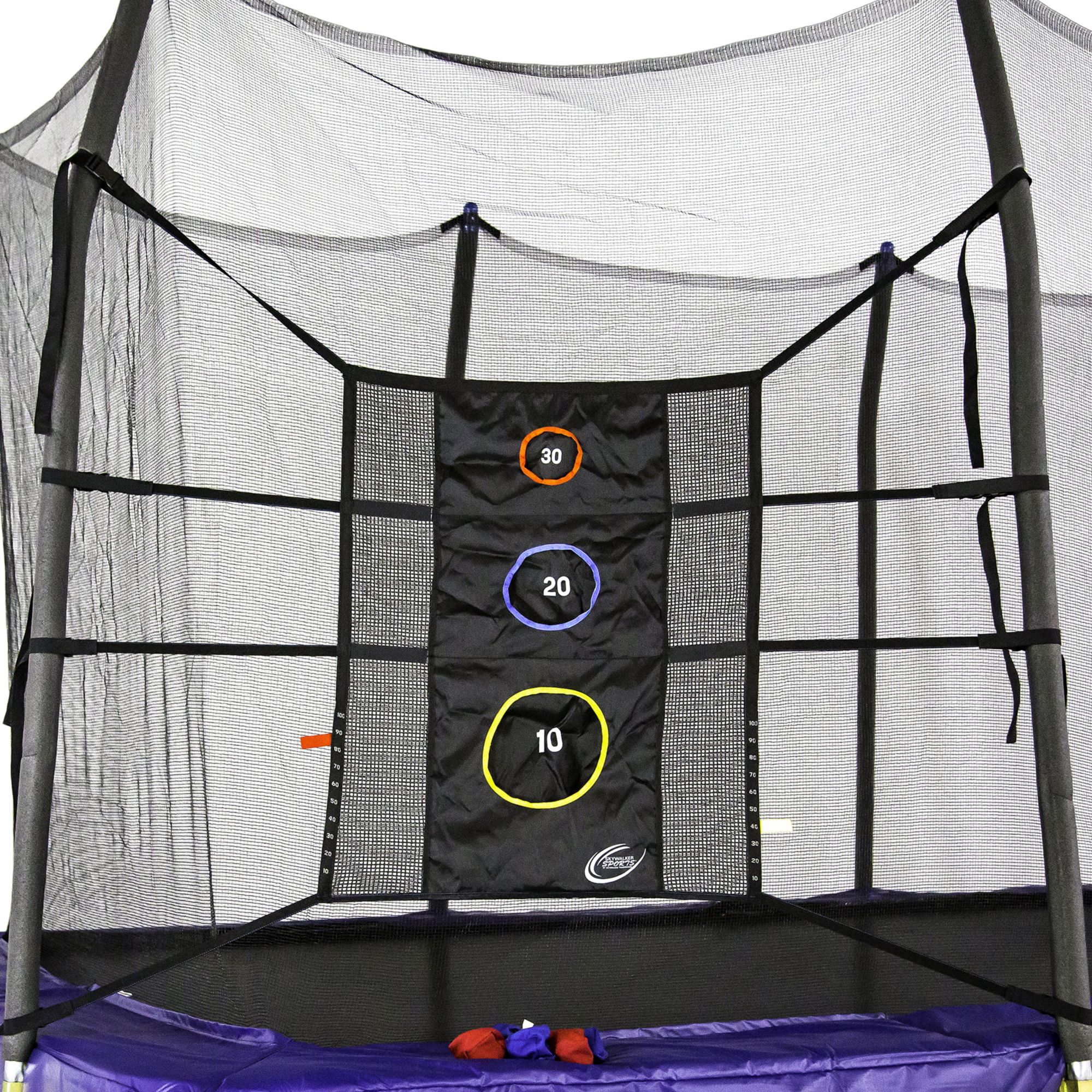 The Skywalker Trampolines Triple Toss Game is the perfect accessory for your trampoline. This game easily attaches to the enclosure poles of your trampoline and will keep the kids entertained while they wait for their turn to jump. The game includes six bean bags, and detachable score tags to keep track of all your points. This accessory will add fun to any Skywalker Trampoline.