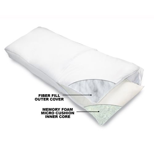 Microcushion memory foam core provides contoured support and allows for airflow Fiber-filled outer cover offers a soft, downy touch for comfort while sleeping Conforms to your natural body position to help relieve painful pressure points and promote proper alignment for a restful night's sleep Removable gusseted cover is machine washable for a quick, thorough clean Included soft-feel pillowcase provides an added layer of comfort Warranty: 5 years