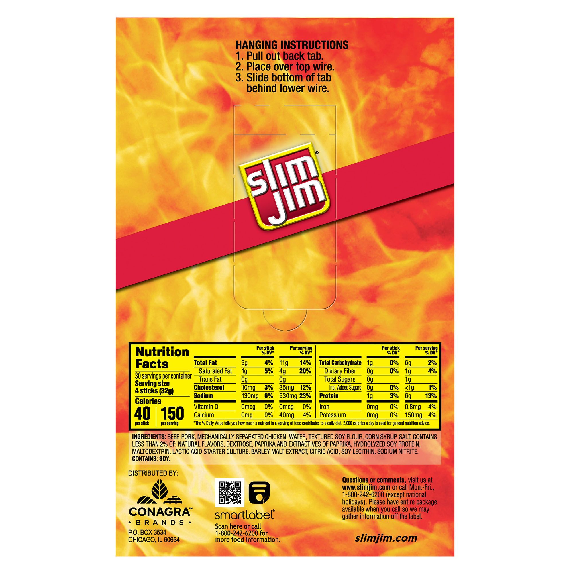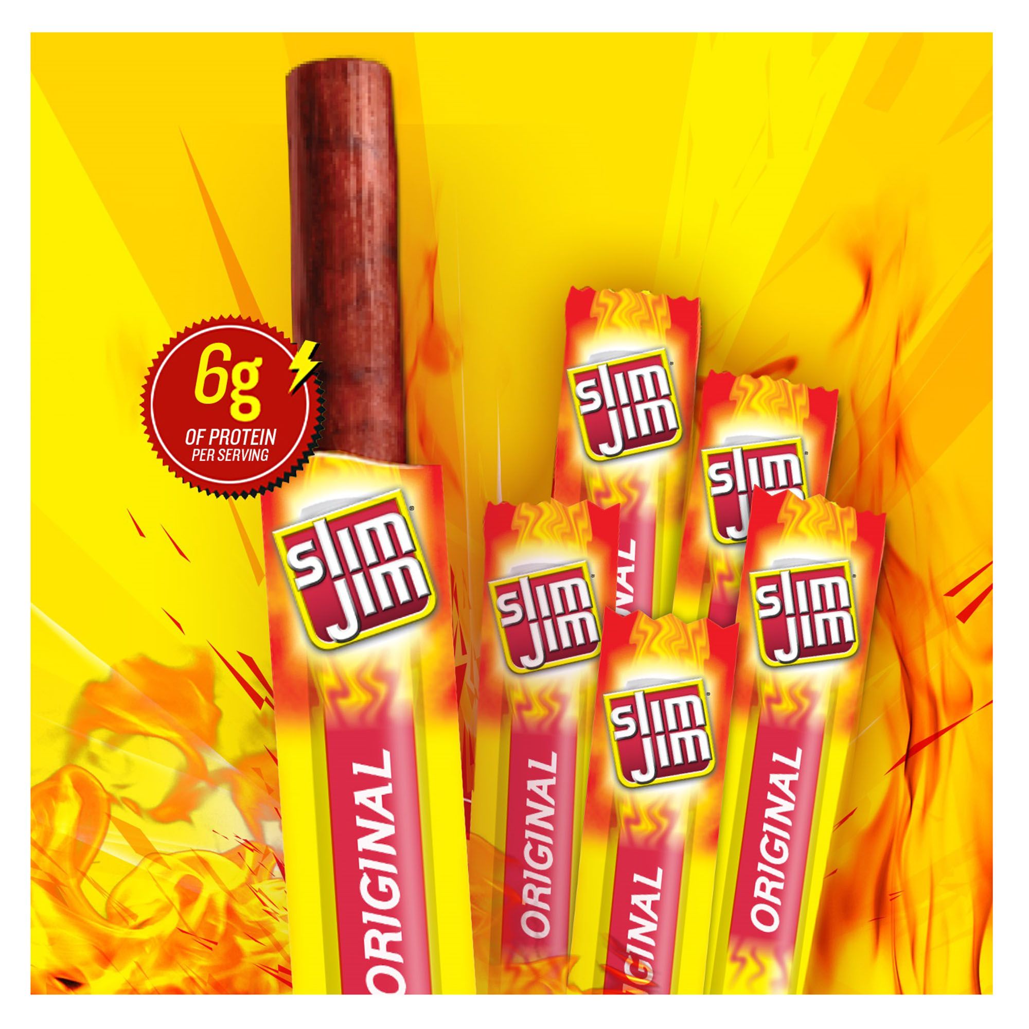 Slim Jim Smoked Snack Sticks are a perfect on-the-go snack that fits into your day and stays fresh. This tasty jack-of-all-trade goes anywhere. Stow a pack in the car, under the bed and in your golf bag and satisfy your hunger anytime, anywhere. Made with six grams of protein in each delectable serving, this meaty snack stick treats your taste buds with its carnivore-pleasing recipe of bold flavors.