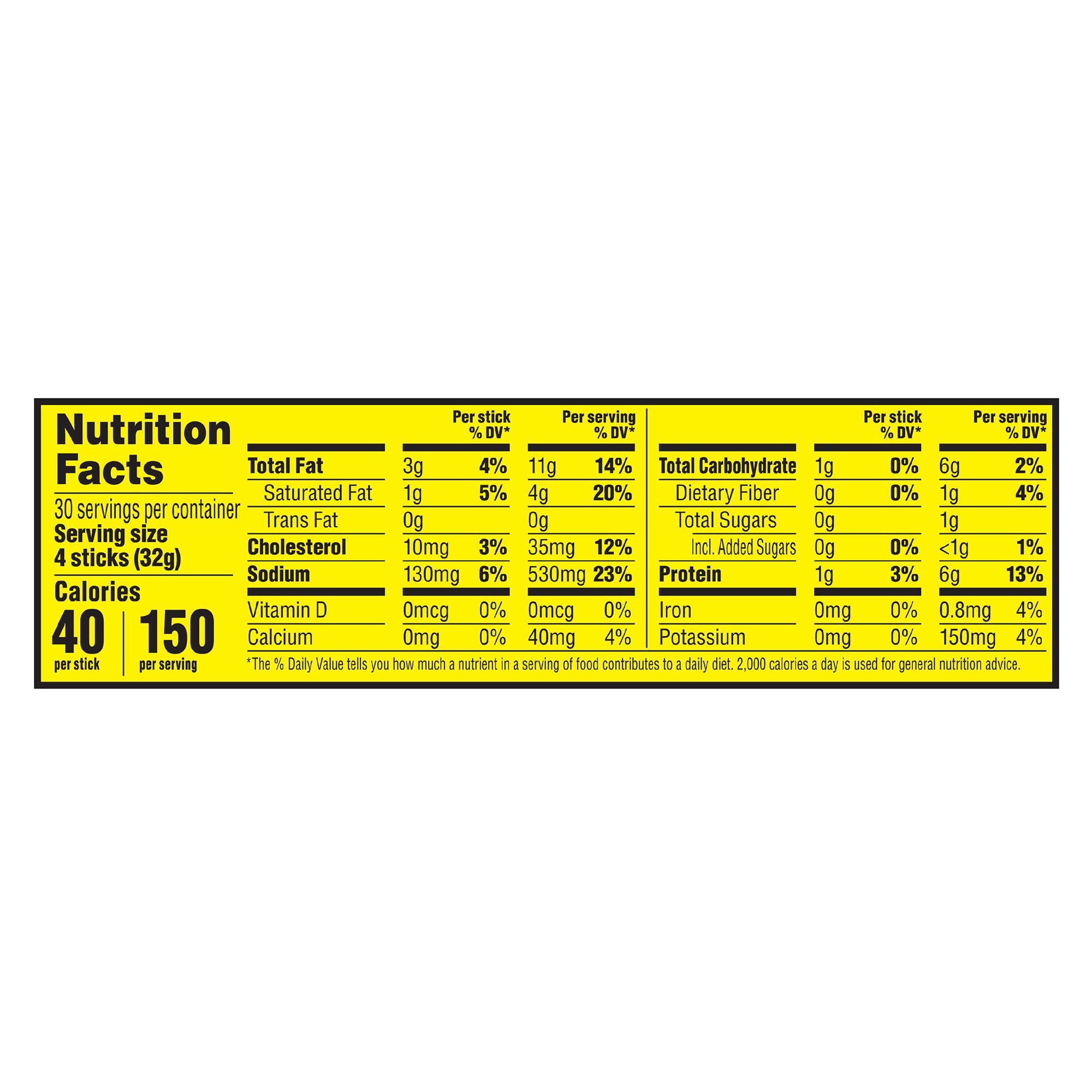 Locked and loaded with an energy-maintaining six grams of protein in each serving Individually wrapped snack stick for an easy, on-the-go snack Intensely bold original flavor prime for snack time, lunch time or after school Includes 120-count of 0.28 oz. smoked snack sticks