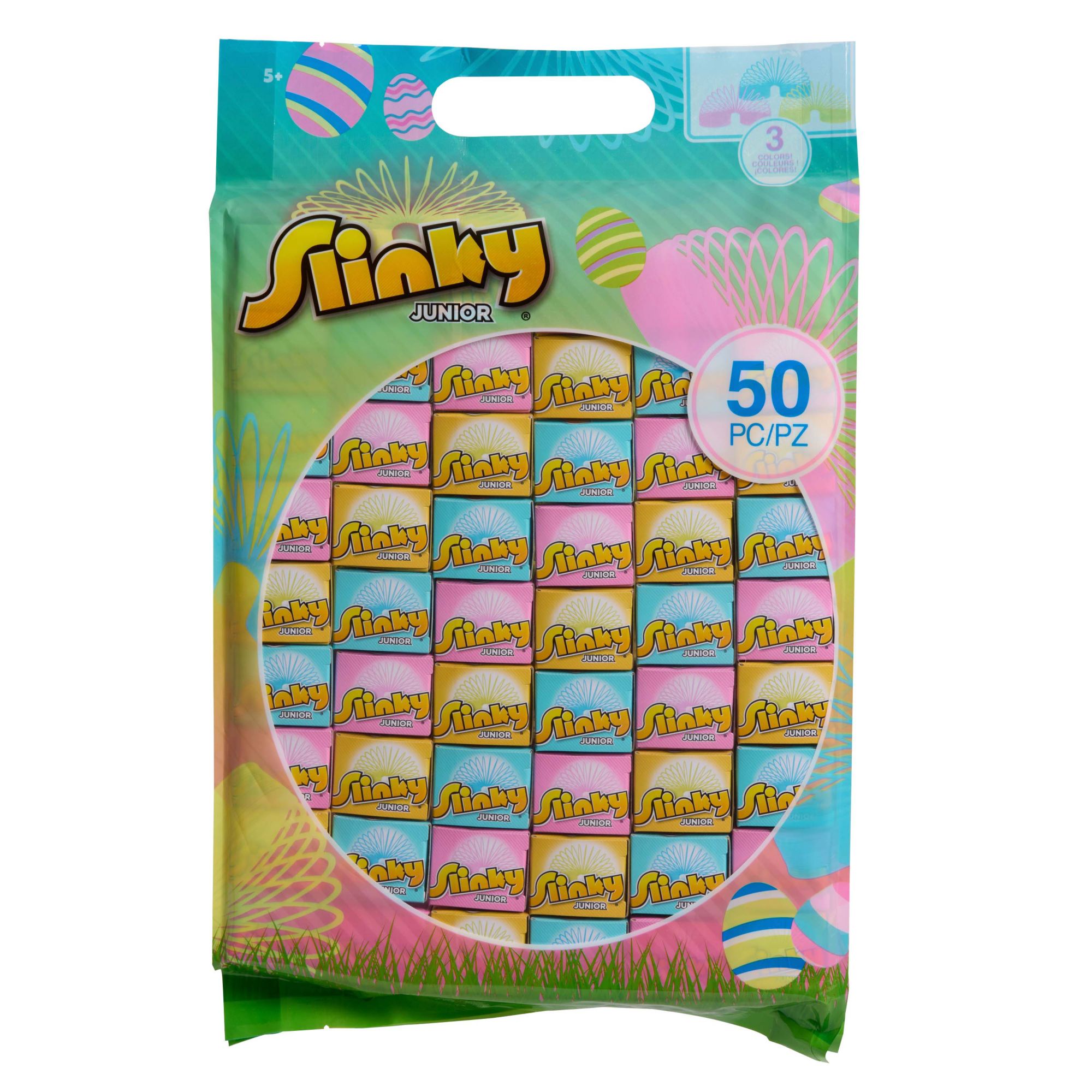Includes 50 plastic Slinky Jr.