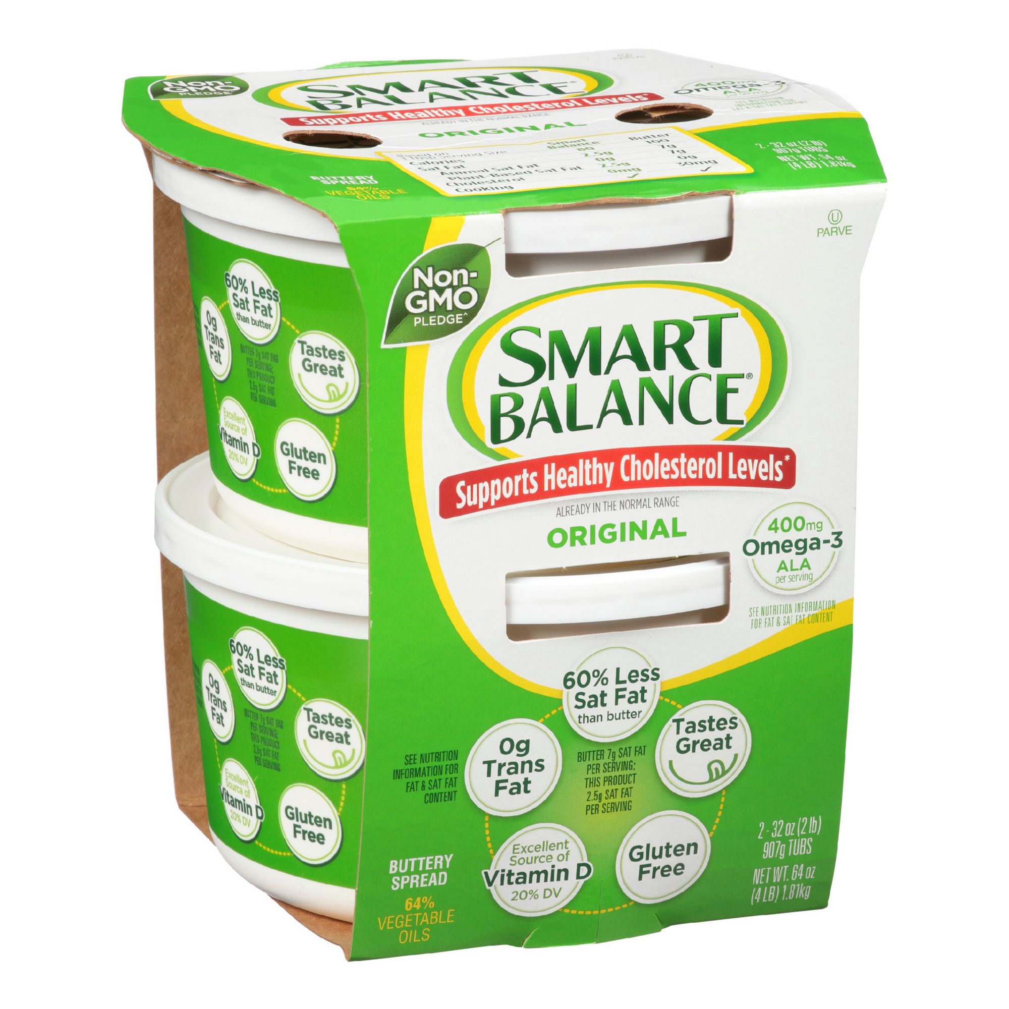 With Smart Balance 32 Oz. Buttery Spreads, you can enjoy the buttery taste you love while supporting healthy cholesterol levels. The spread is non-GMO, gluten free and packed with omega-3 ALA and Vitamin D.