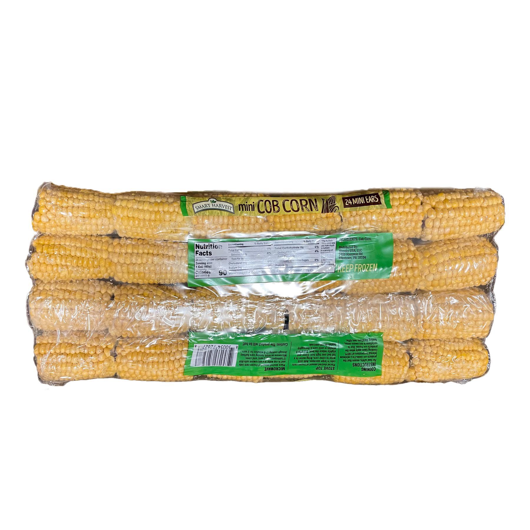 Harvested fresh from the farm and frozen for your convenience and for year-round enjoyment. Smart Harvest brings the best corn from the field, cut into mini cobs, and puts a delicious taste of summer on your plate. A compliment to any barbecue, clam bake, or other meal to gather with family and friends.