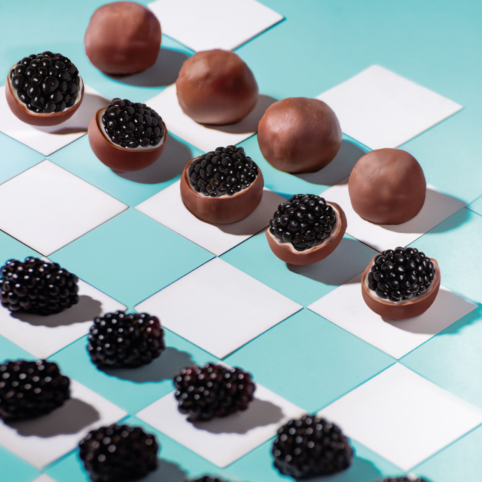 Ingredients: Blackberries, Milk Chocolate (Sugar; Cocoa Butter; Whole Milk Powder; Cocoa Mass; Milkfat; Emulsifier: Lecithins (Soy); Natural Vanilla Flavouring. White Chocolate (Cocoa Butter; Sugar; Whole Milk Powder; Milkfat; Emulsifier: Lecithins (Soy); Natural Vanilla Flavouring.)