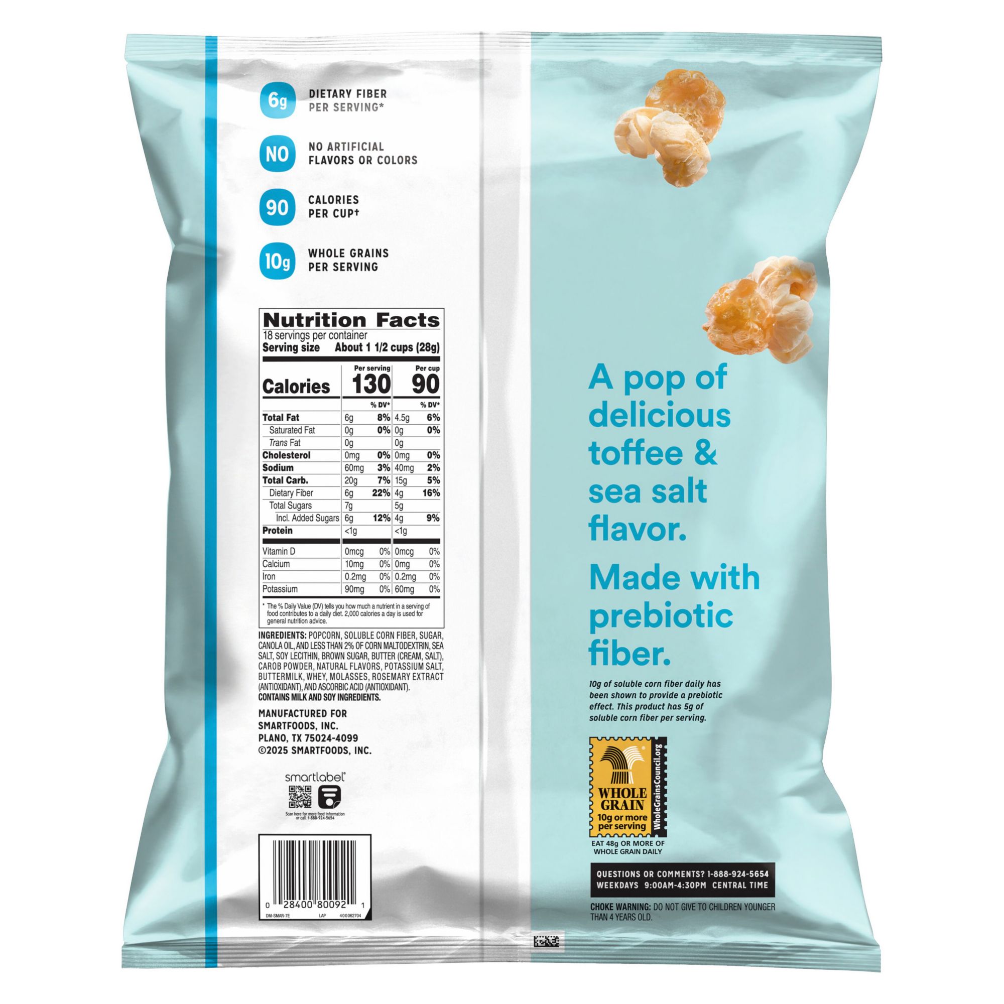 Includes Smartfood Fiber Pop Popcorn Toffee and Sea Salt Flavored, 18 oz.