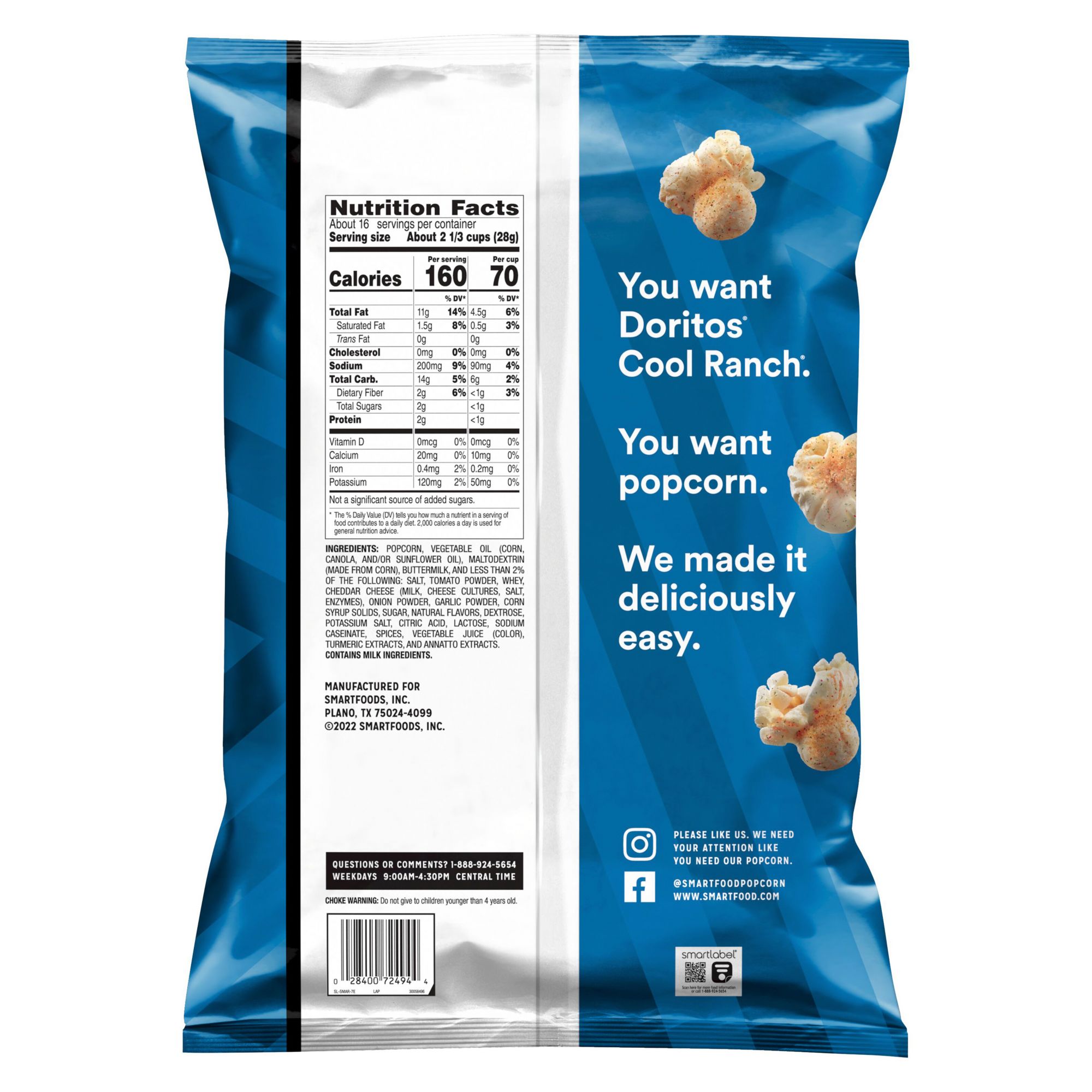 You want Doritos Cool Ranch. You want popcorn. Smartfood made it deliciously easy.
