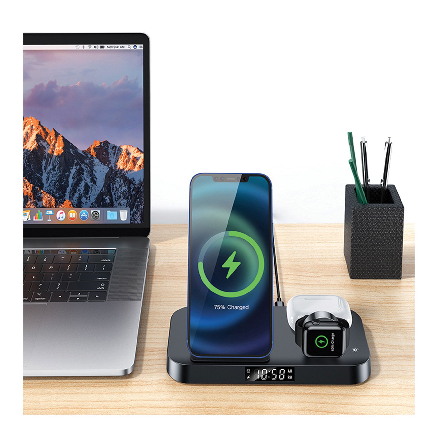 Smartpoint Foldable Charging Alarm Clock 4-in-1 Charging Station