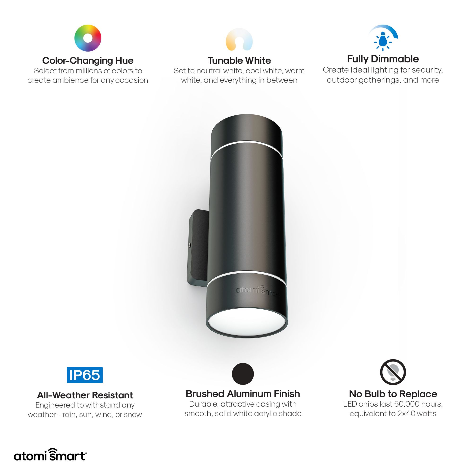 Control your wall lights right from your smart phone with the SmartWiFi LED Wall Sconce Light. Create the light effect you want and save your favorite settings to recall them over and over again. Set the right ambiance for any moment and enjoy different shades of white lighting throughout the year. Multiple scene modes give you a wonderful user experience. Especially great for holidays and events such as Christmas, Halloween, themed birthdays and more. Designed to withstand the toughest weather conditions, it can be used year round in rain, sun, wind, or snow.
