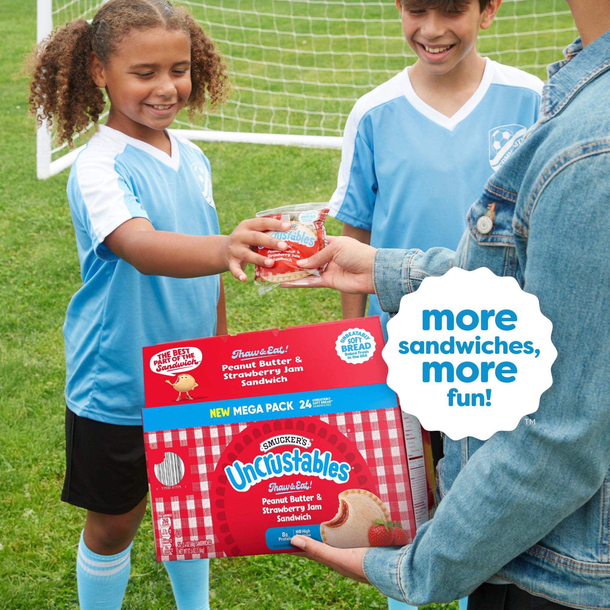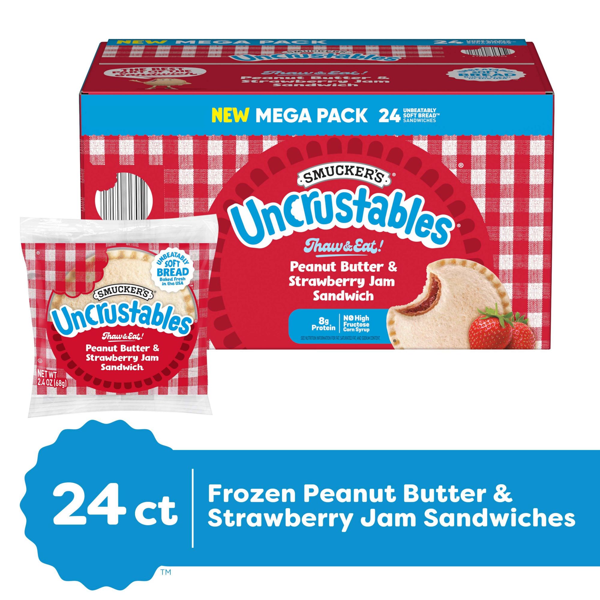 Smucker's Uncrustables Peanut Butter & Strawberry Jam Sandwiches, Mega Pack, Frozen, 24 ct./2.4 oz.