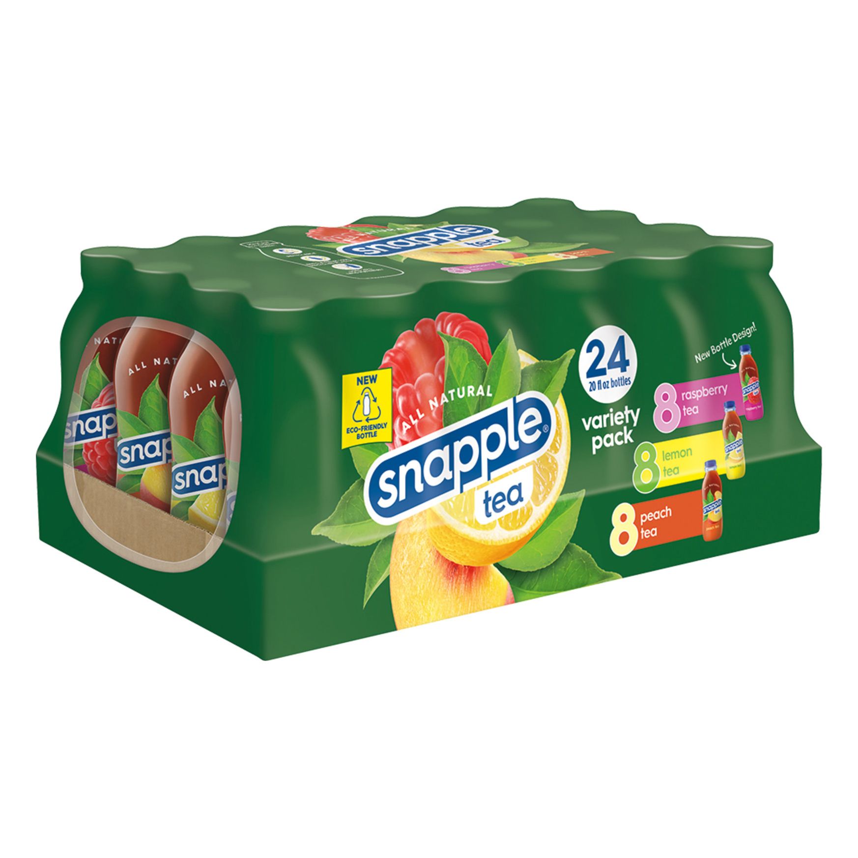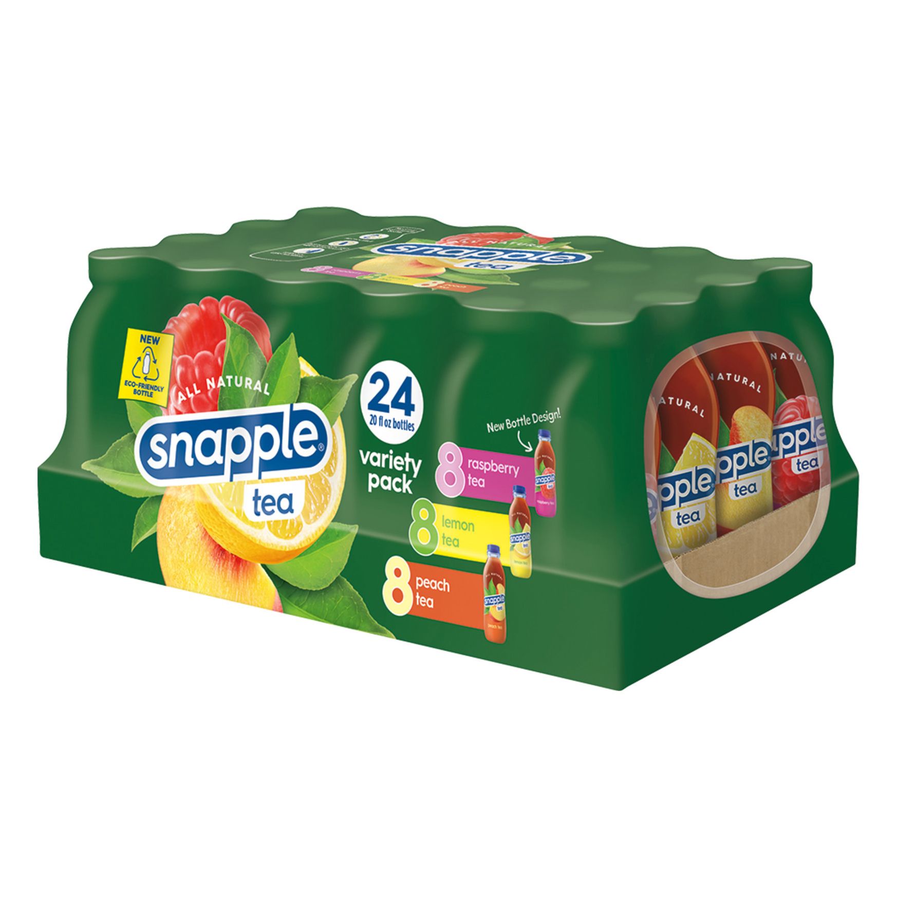 - Includes 8 bottles each of Snapple Peach, Lemon and Raspberry Tea
