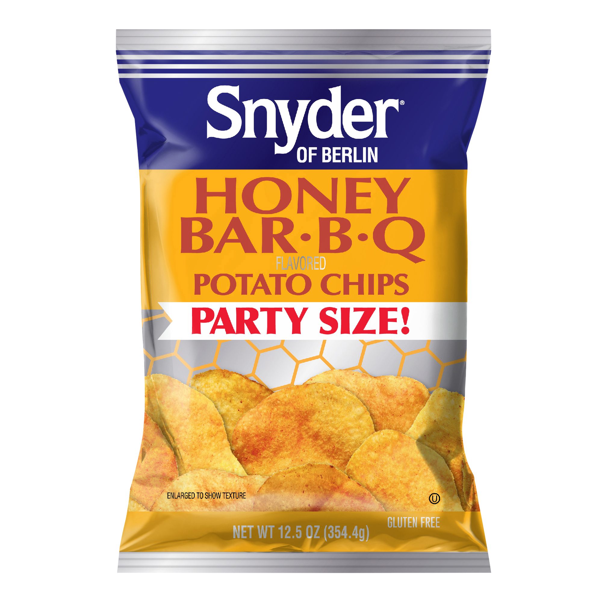 Local product Family size Party size Great flavor and value Includes Snyder of Berlin honey BBQ potato chips, 12.5 oz.