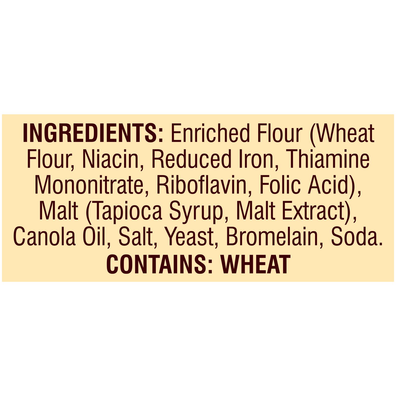 Ingredients: Enriched Flour (Wheat Flour, Niacin, Reduced Iron, Thiamine Mononitrate, Riboflavin, Folic Acid), Tapioca Malt Syrup (Tapioca Syrup, Malt Extract), Vegetable Oil (Canola, Palm, Soybean And/or Sunflower), Salt, Contains 2% Or Less Of: Yeast, Sugar, Soda. Contains: Wheat.