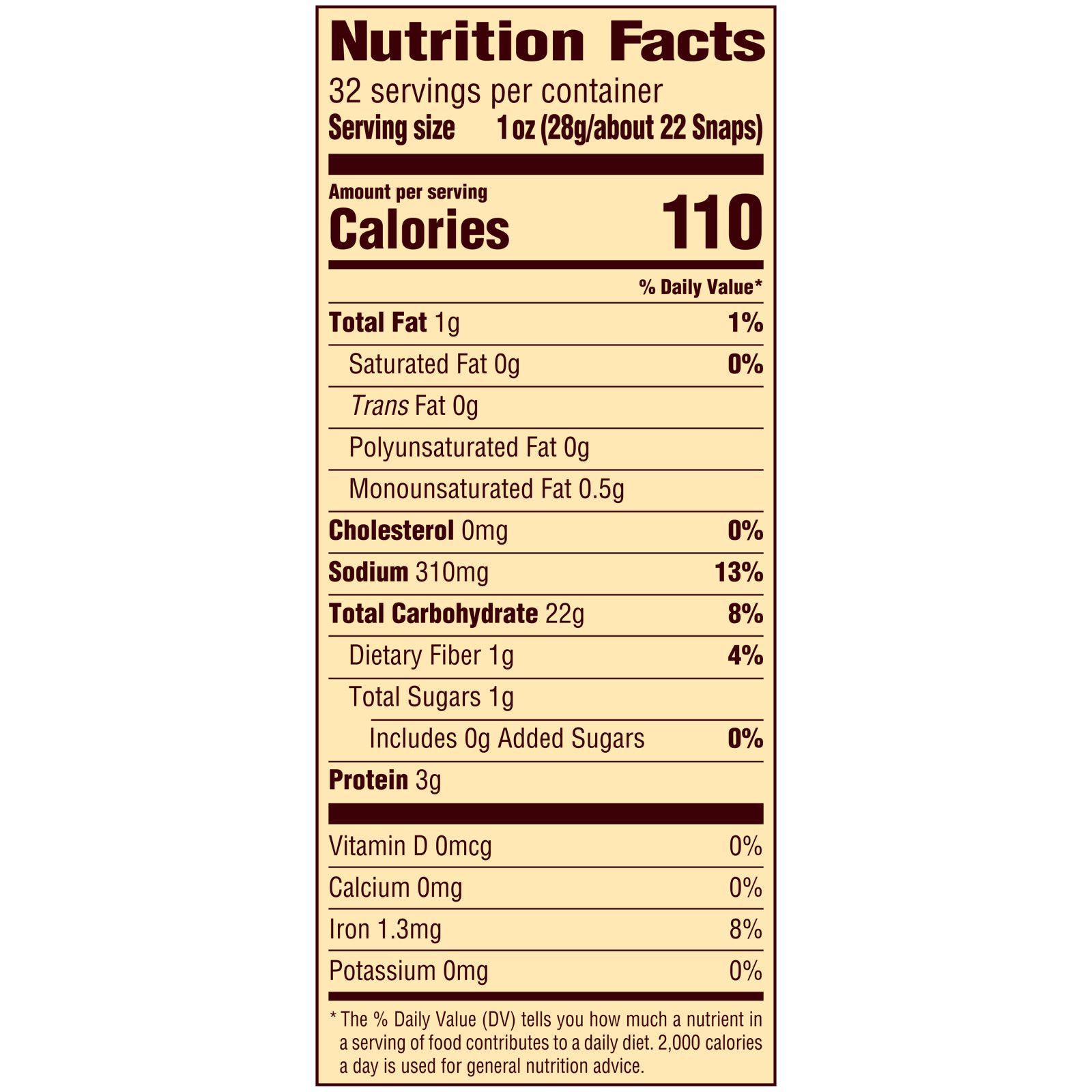 Enjoy the rich, hearty flavor of traditional pretzels in a checkerboard shape with Snyder's of Hanover Snaps Pretzels. These low fat pretzels are super crunchy and flavorful. Dip these pretzel snaps or decorate them as part of a holiday recipe. Snaps Pretzels are Non-GMO Project Verified and made in a facility that does not process peanuts.