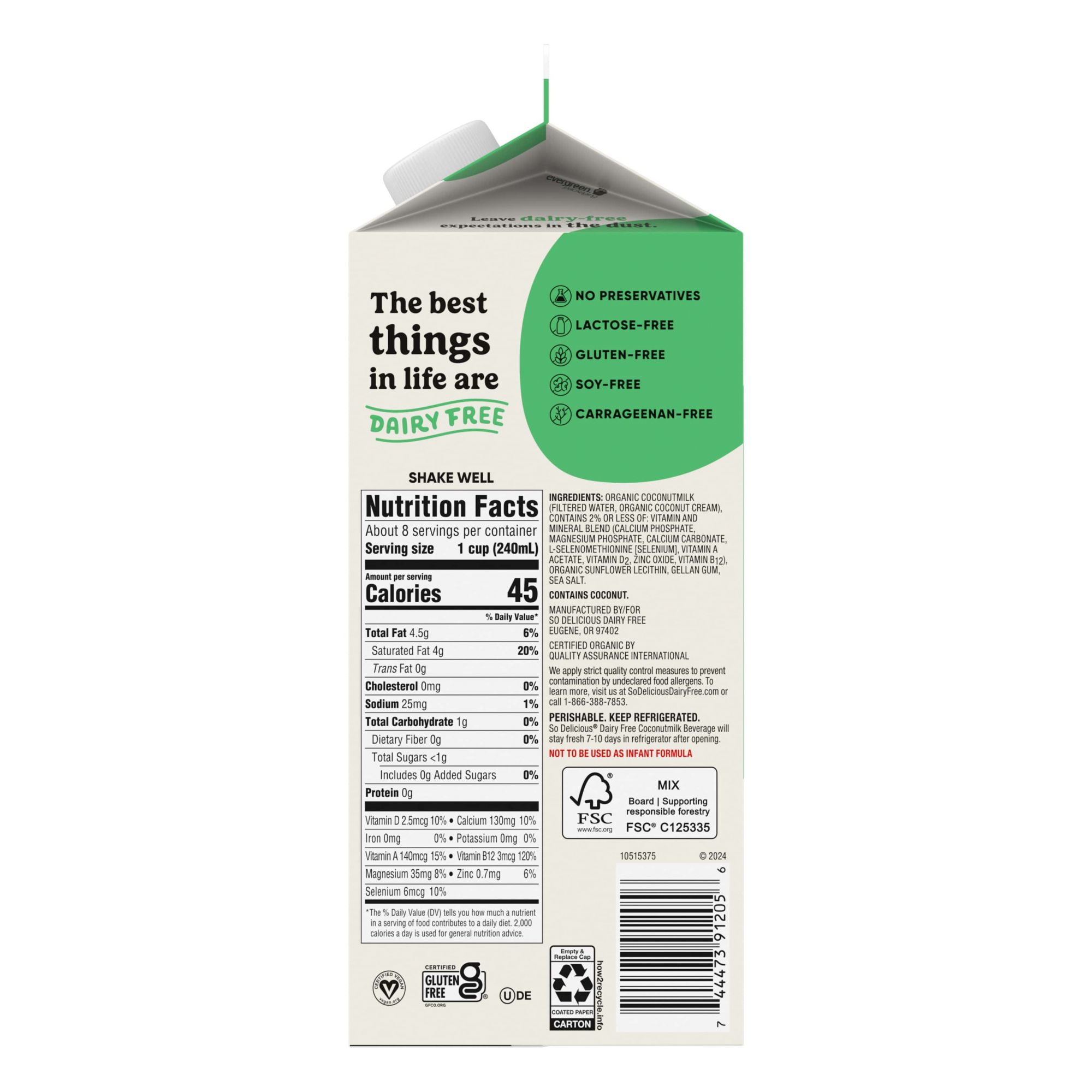 So Delicious Dairy-Free Organic Unsweetened Coconut Milk, 64 fl. oz.